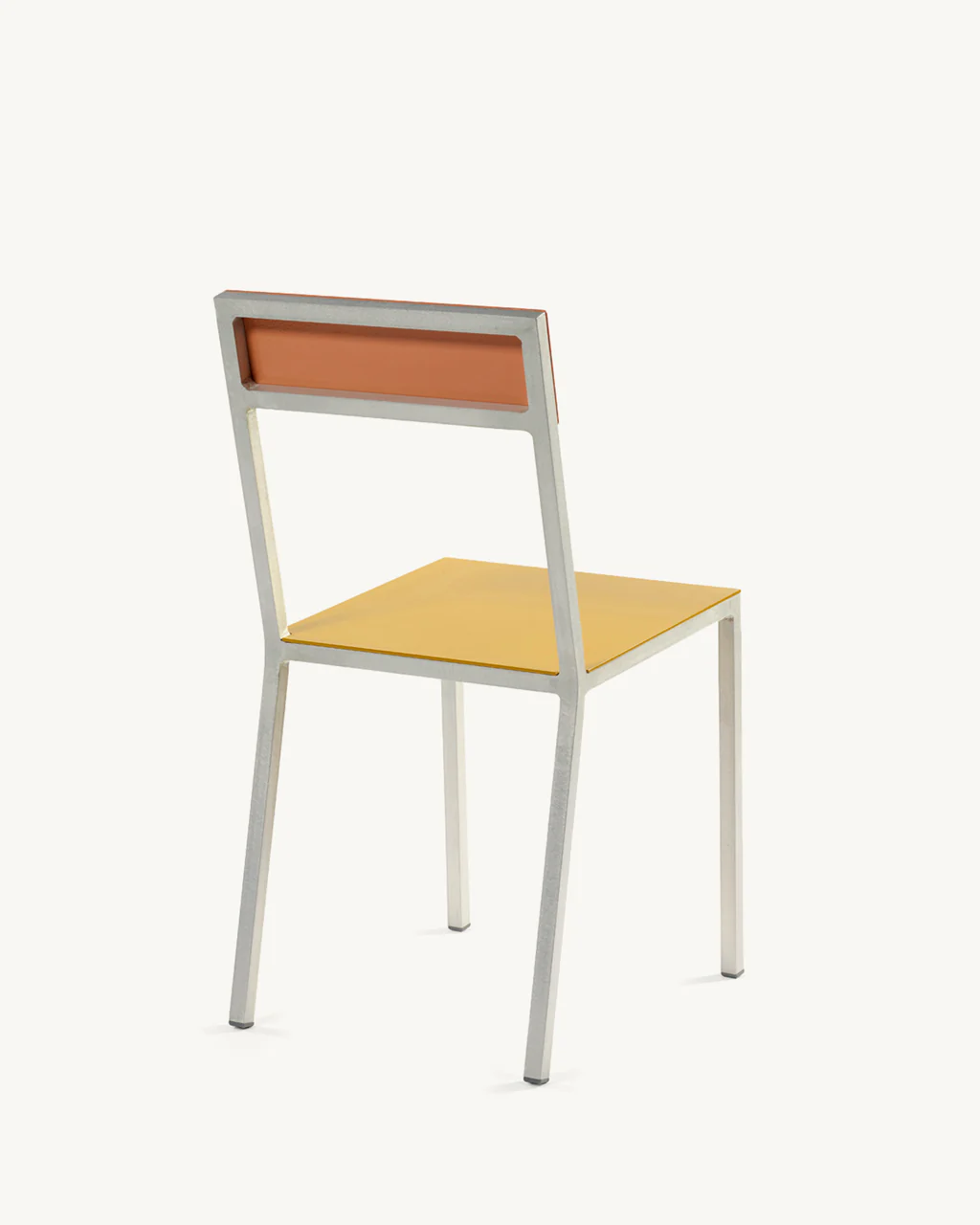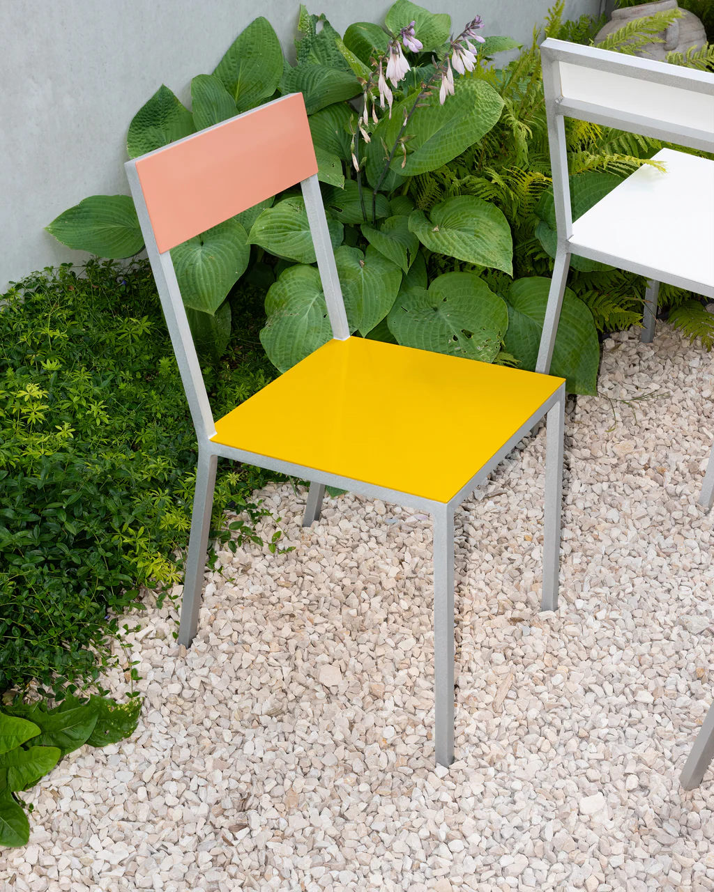 The renowned design duo Muller Van Severen created the Alu Chair in 2015 for Anne Holtrop’s Bahrain Pavilion at the World Expo in Milan. Originally conceived as an outdoor chair, it quickly became a favorite among architects and design enthusiasts for its playful minimalism and unmistakable Muller Van Severen signature. The Alu Chair’s lightweight aluminum frame makes it easy to move, while its uncoated surface gleams beautifully in the sunlight. Carefully selected colors are applied with a UV-protective lacquer, ensuring long-lasting vibrancy whether used outdoors or as a striking design piece indoors. Elegant, timeless, and effortlessly functional, the Alu Chair perfectly embodies the designers’ refined simplicity.