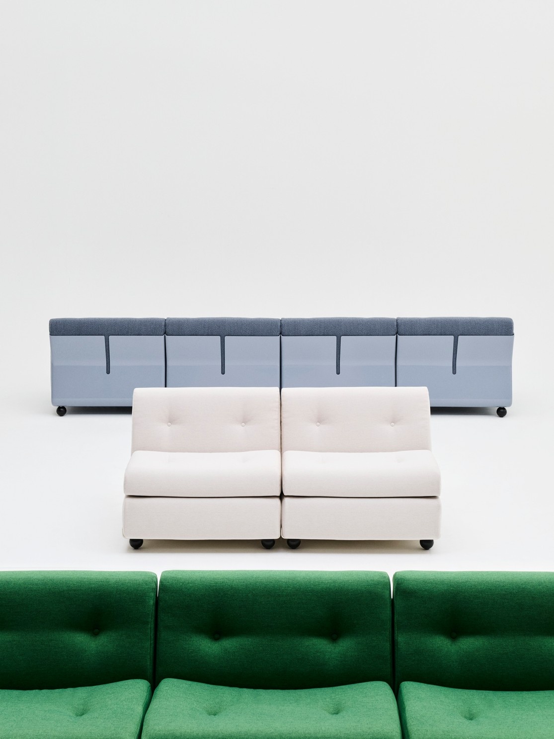 Originally designed by Mario Bellini in 1966 and reissued by HAY, Amanta Sofa embodies the essence of innovative mid-century Italian design. A modular seating solution defined by its sculptural design and organic, low-slung silhouette, Amanta continues to stand out for its timeless ingenuity. With modular units that work alone or together, the sofa’s flexible design is an example of the designer’s multidisciplinary expertise in form and function. Crafted with architectural precision from at least 99% post-consumer recycled ABS, the shell is complemented by 94% biomass-balanced foam cushions that deliver ergonomic support, with all components designed for disassembly. Amanta's enduring aesthetics and ability to adapt to interior spaces make it a versatile choice for a wide range of domestic and public settings.