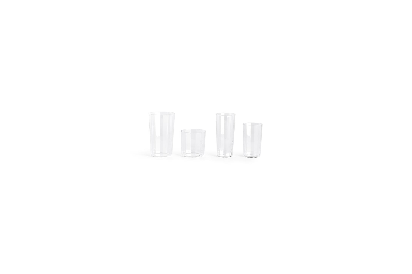 Angle Glass is made in thin glass with faceted sides, creating a simple yet elegant expression that elevates table settings. Available in different sizes and shapes that are easy to stack, the versatile glasses can be used for a variety of beverages for both everyday use and special occasions.