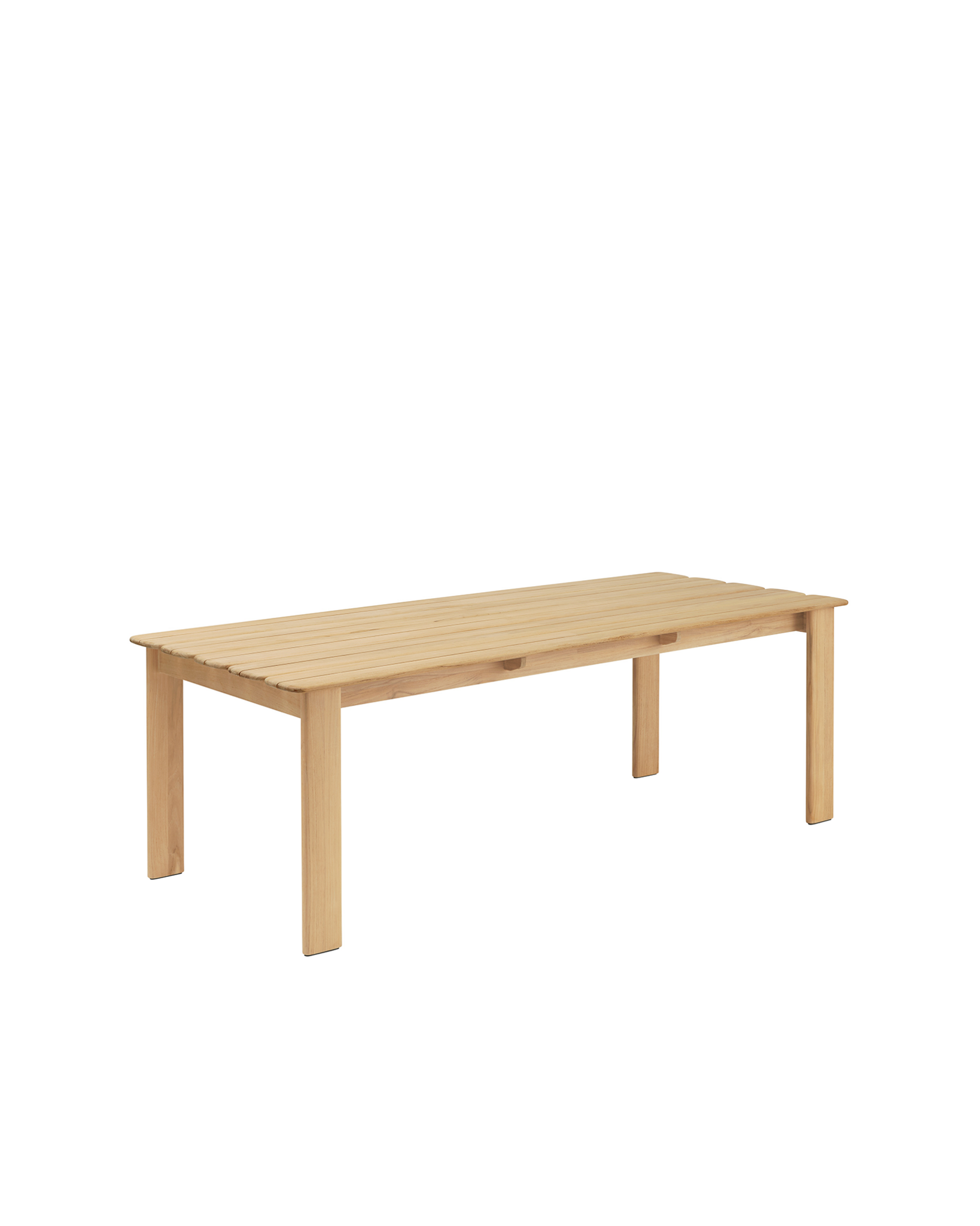 The Assemble Series introduces a fresh perspective on outdoor furniture, where material integrity and refined craftsmanship take center stage. This table is crafted from FSC™-certified teak (FSC-C028824), a wood renowned for its durability, weather resistance, and warm natural character. Its wide planks and softly rounded edges create a tactile and inviting surface that feels both solid and elegant.