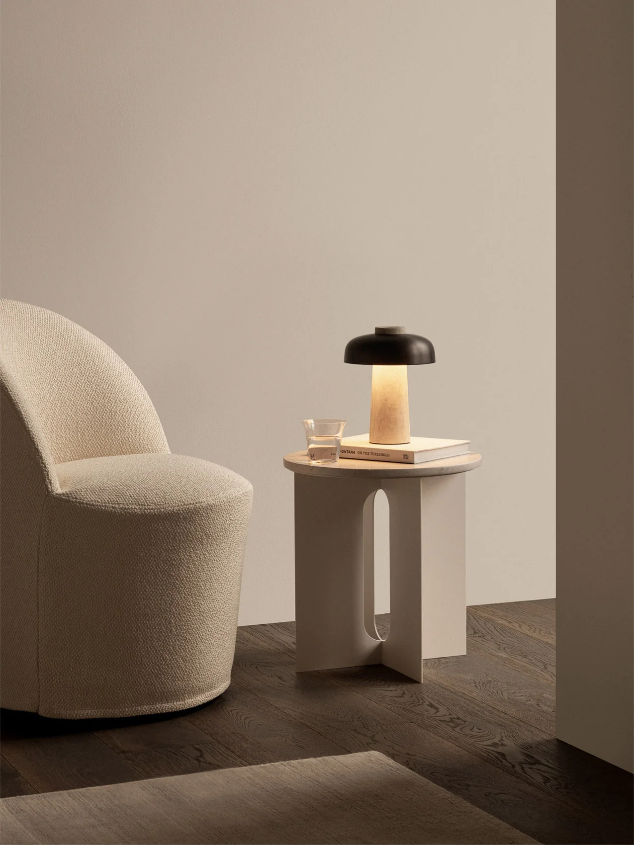 - Table lamps: Perfect for bedside, shelves and sideboards to add warmth and pockets of light. Materials like travertine or brass bring rich tactility. The Audo Reverse table lamp pairs a stone base with gentle diffuse light.