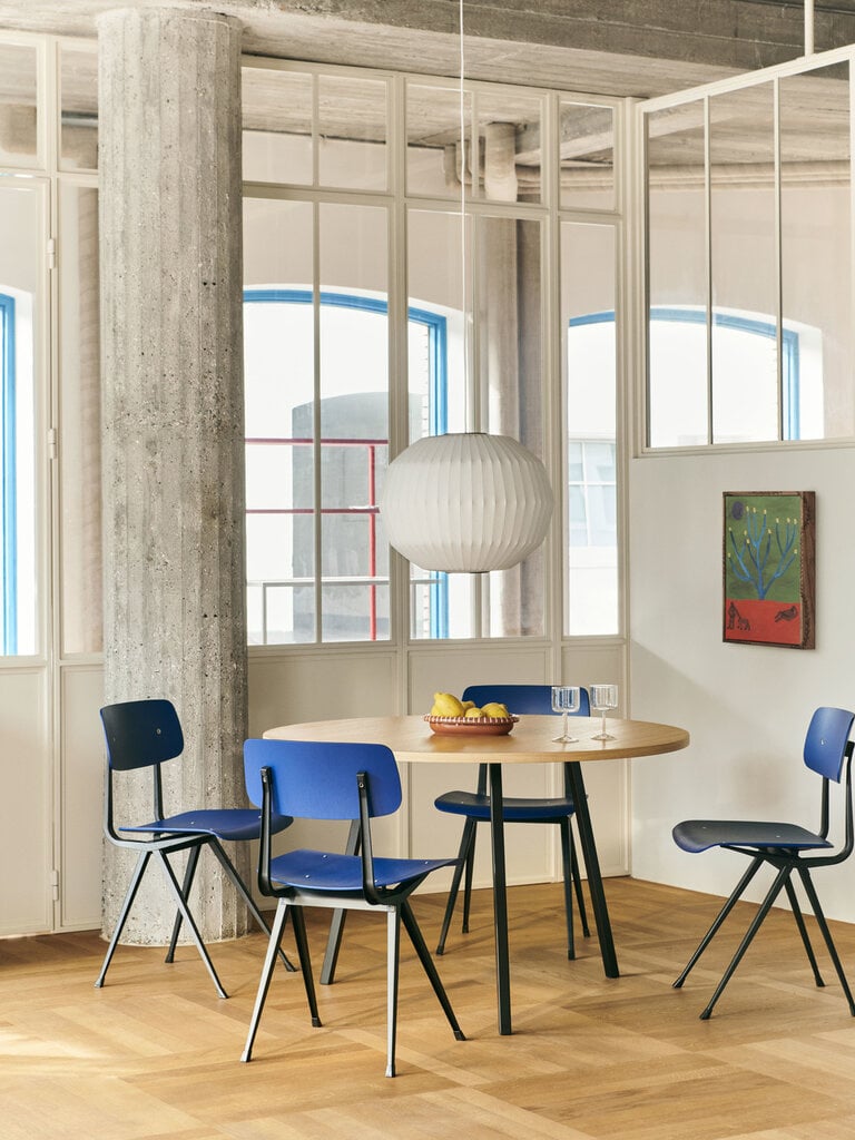 120 cm is a sweet spot for 5 people, with the possibility of 6 for short meals when using slim armless chairs and a pedestal base. If you entertain occasionally, this size balances comfort and flexibility well. The Two-Colour Round Table comes in various diameters so you can match capacity to your space.