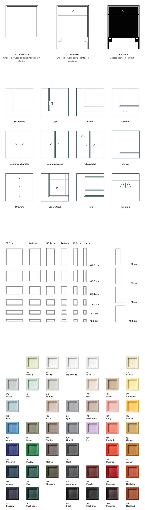 For starters, there's the extensive Montana System which gives you endless possibilities – with 36 basic modules, 4 depths and 43 poetic finishes you can create a shelving system just as you like. The system is made in 12 mm MDF. In 2019, the Montana System was certified with the EU Ecolabel, guaranteeing you sustainable, high-quality furniture which is safe for both the environment and your home. Take a look below at some of the possibilities.