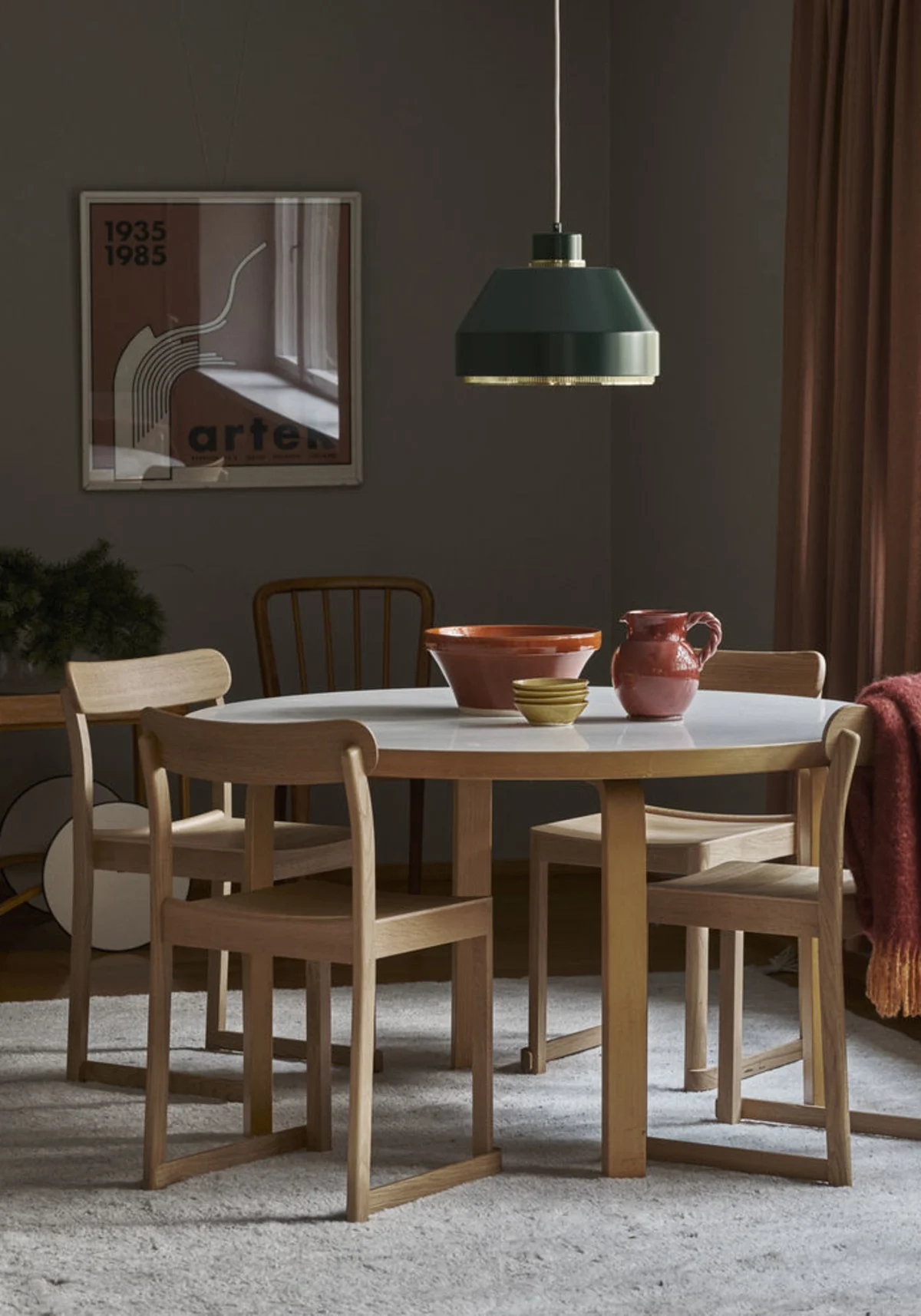 | Light wood | Use a pale, rounded dining table | Aalto Table 90A by Artek |