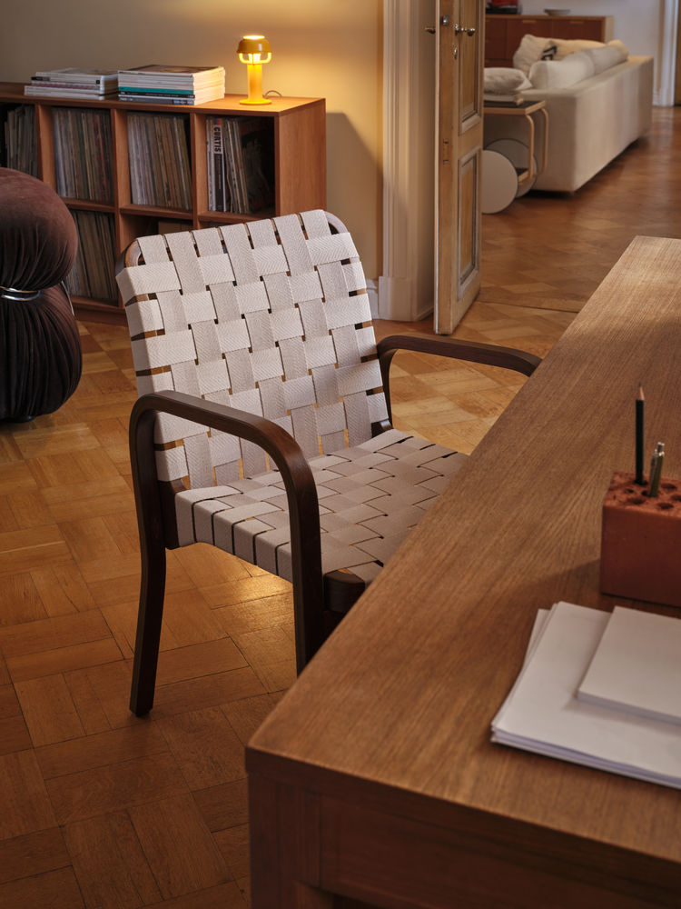 Armchair 45 returns to the collection this autumn to complement generous, multi-layered living spaces that transcend time and place. A favourite of its creator, Alvar Aalto, who used it in his architectural studio, the chair brings comfort and refinement to homes and working environments.