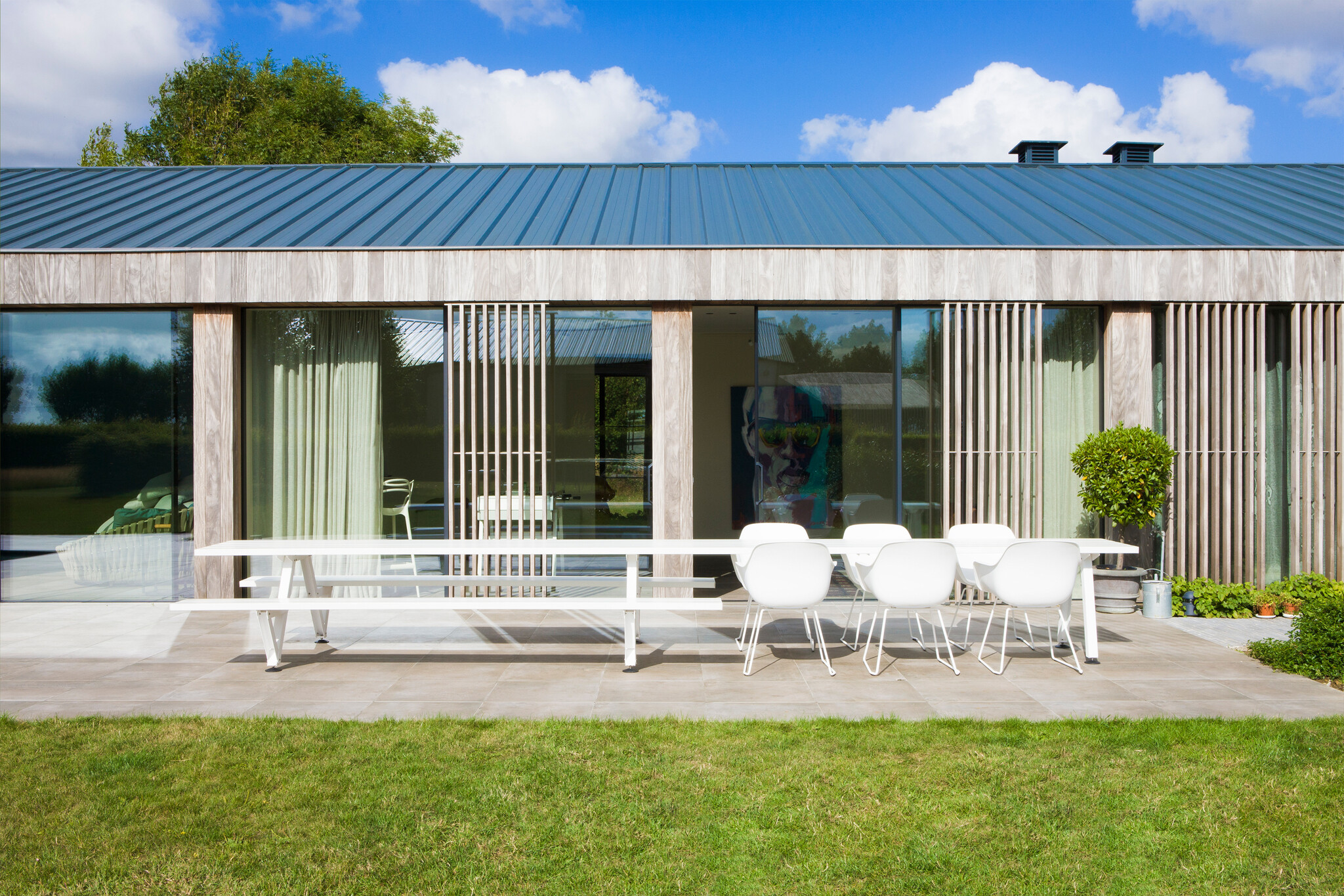 The Captain’s Chair, designed by Metrica (Bruno Fattorini and Robin Rizzini), is a contemporary alternative to the Marina bench. Its shell seat with drainage stays clean even outdoors, while the cushion fits the curves perfectly, preventing it from blowing away. With various leg options inspired by yacht helm chairs, this versatile design suits all ages and body types, offering unmatched comfort.