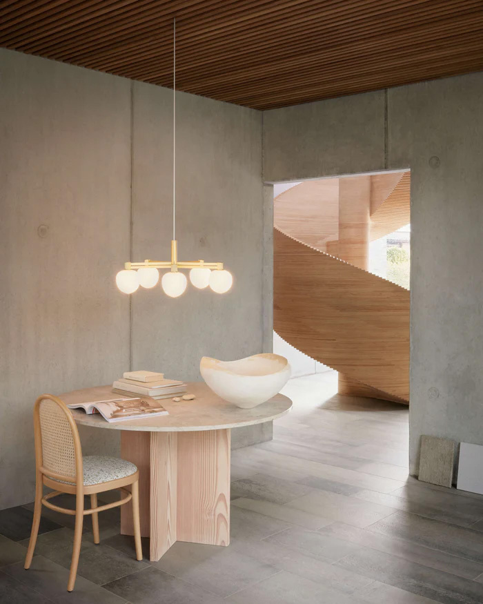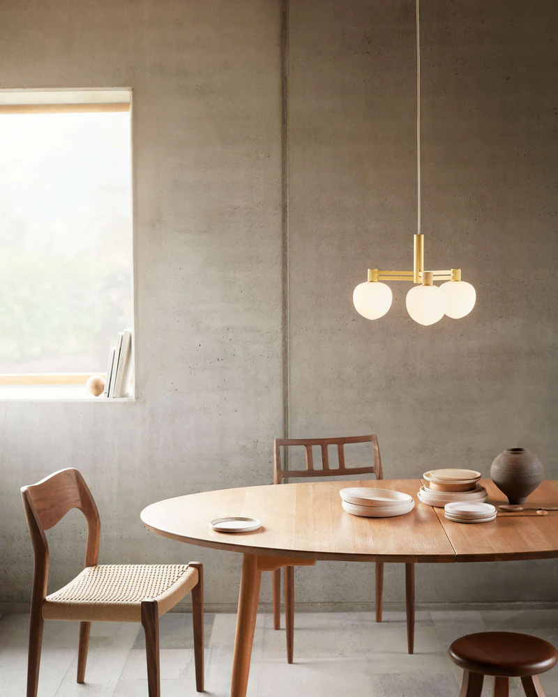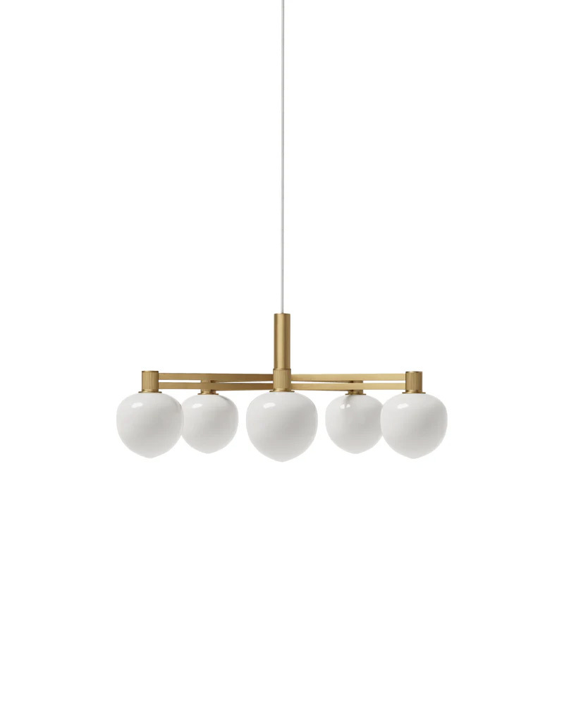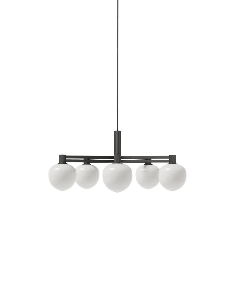 MEMOIR is a product family designed by GamFratesi based on a modern take and interpretation of the classic chandelier. At the heart of the design is the gently shaped opal glass shade that evokes a historical typology and romantic spirit. The linear metal structures compose a graphic outline that allows it to be connected in numerous compositions. The simplistic ingenuity of the MEMOIR lighting system bridges decorative details of the past and a sculptural silhouette intended for modern spaces.