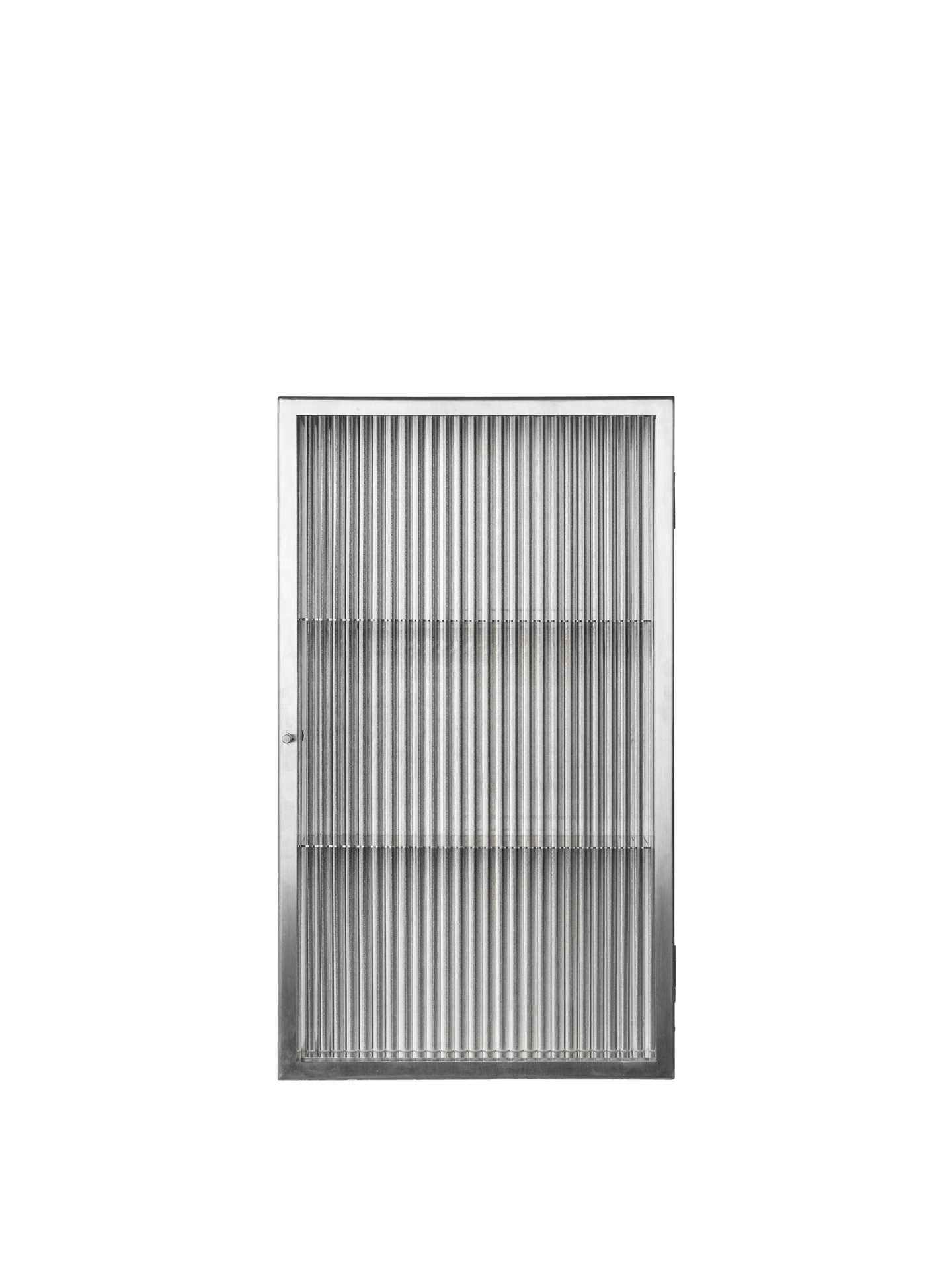 The Haze Wall Cabinet builds on the signature expression of the Haze Series with an elongated format offering additional storage and a brushed stainless steel finish. The surface highlights the material’s natural texture while softly reflecting light. Ideal for bathrooms, kitchens, or hallways, it keeps everyday essentials neatly concealed while adding a refined industrial touch.