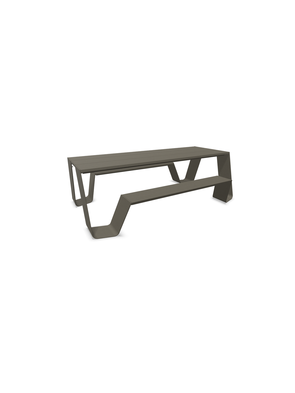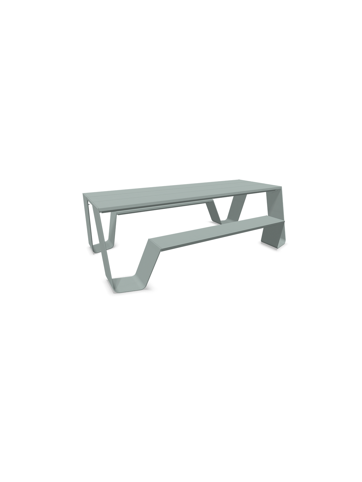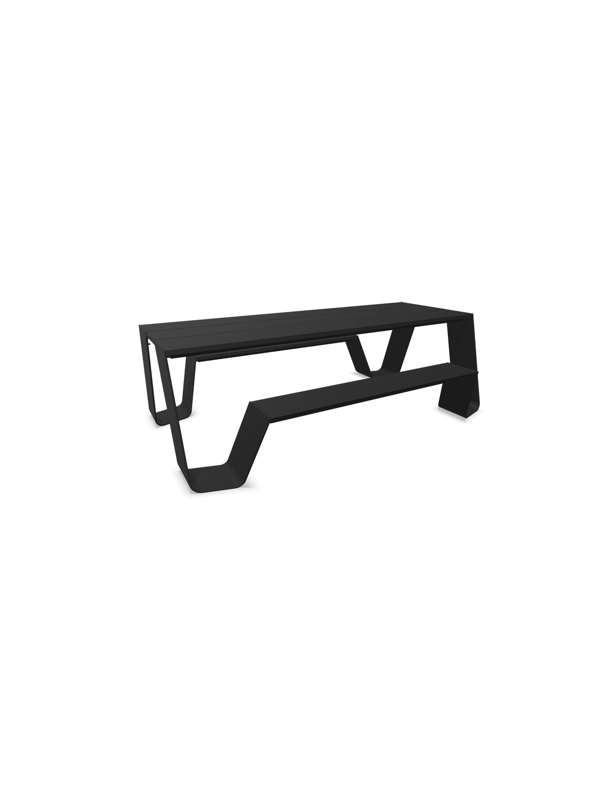 A timeless sculpture: Hopper AA (All Aluminum) is a monomaterial picnic table with a sleek visual aesthetic, but designed with functionality in mind. Four pass-through zones at the ends eliminate the need to scramble over the benches to reach the table.