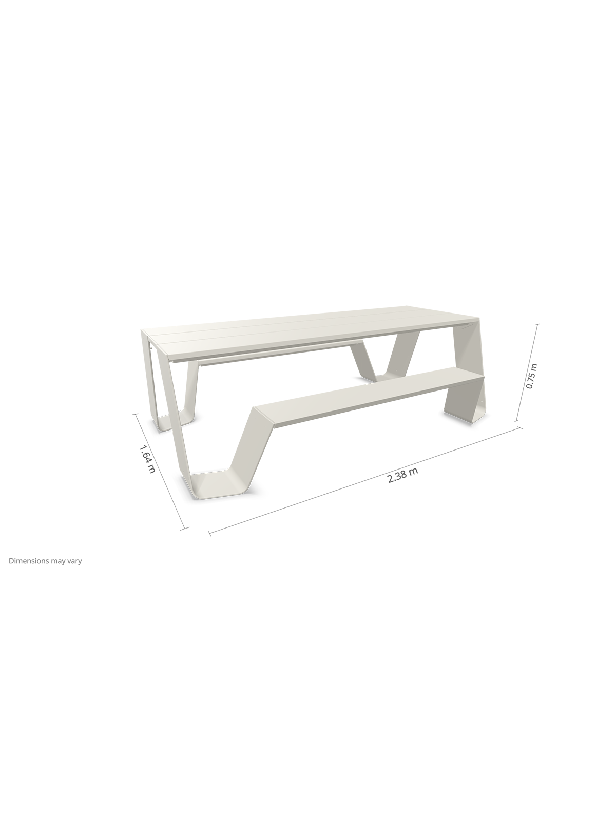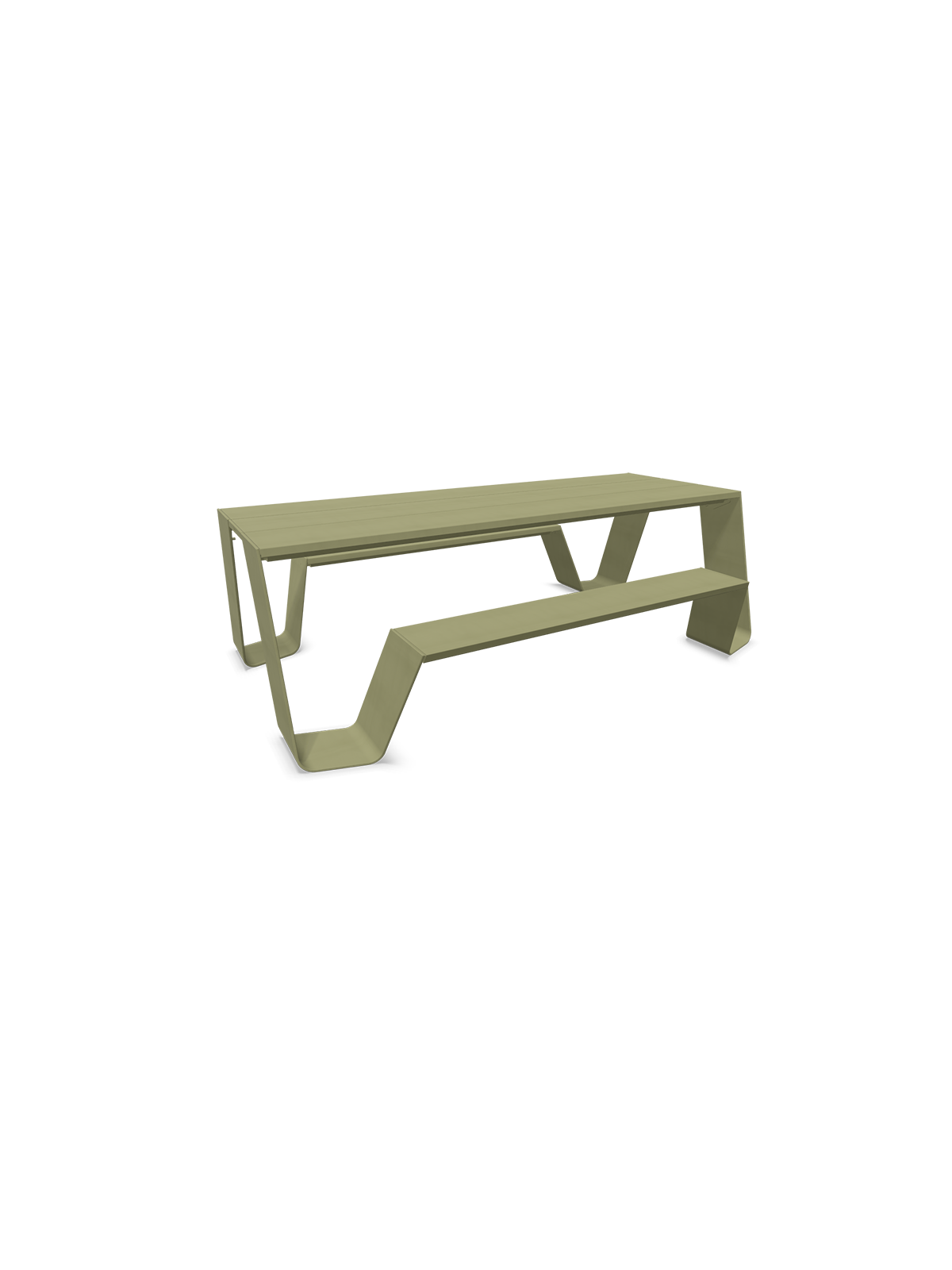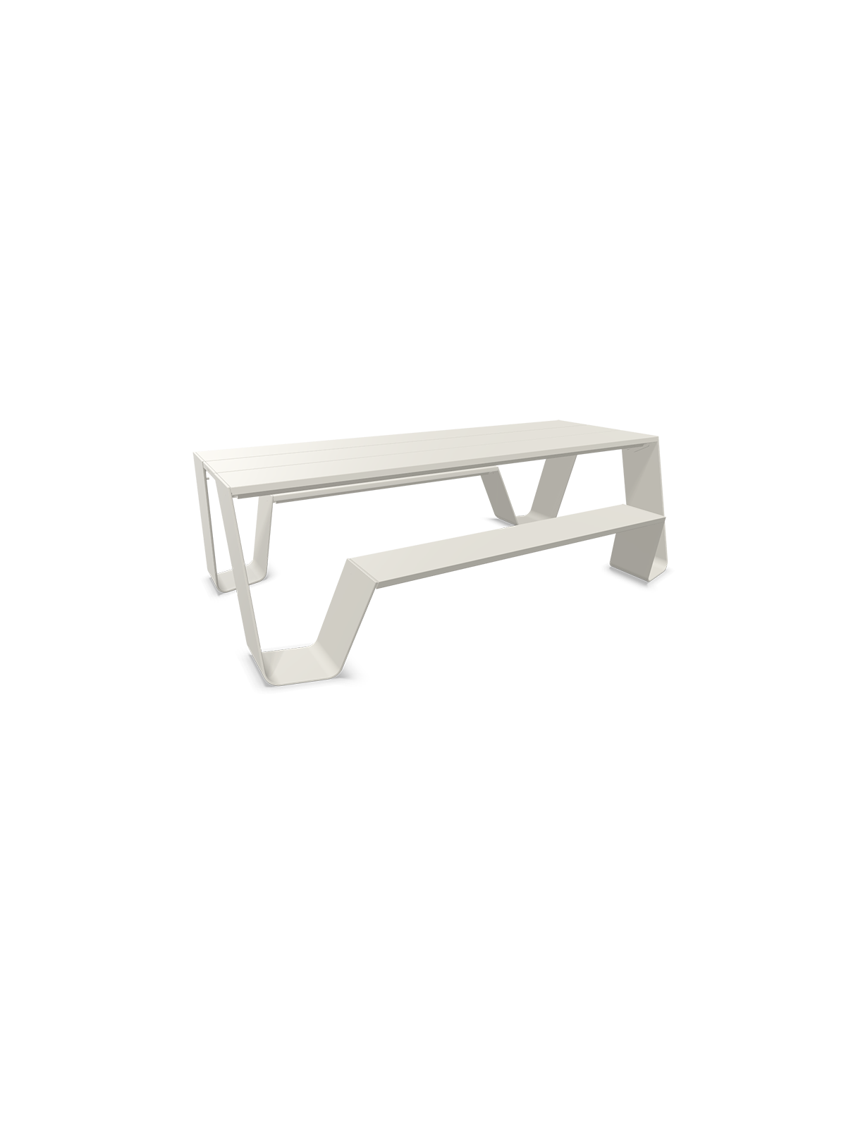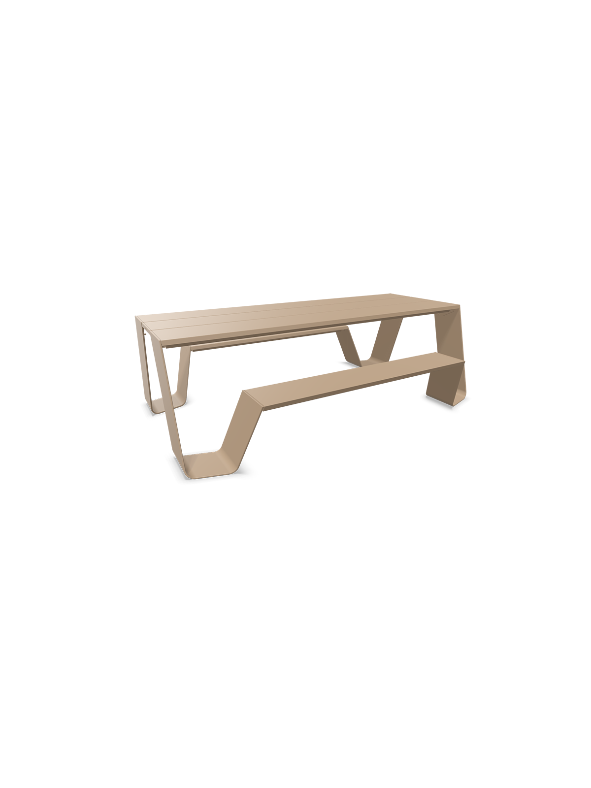 A timeless sculpture: Hopper AA (All Aluminum) is a monomaterial picnic table with a sleek visual aesthetic, but designed with functionality in mind. Four pass-through zones at the ends eliminate the need to scramble over the benches to reach the table.