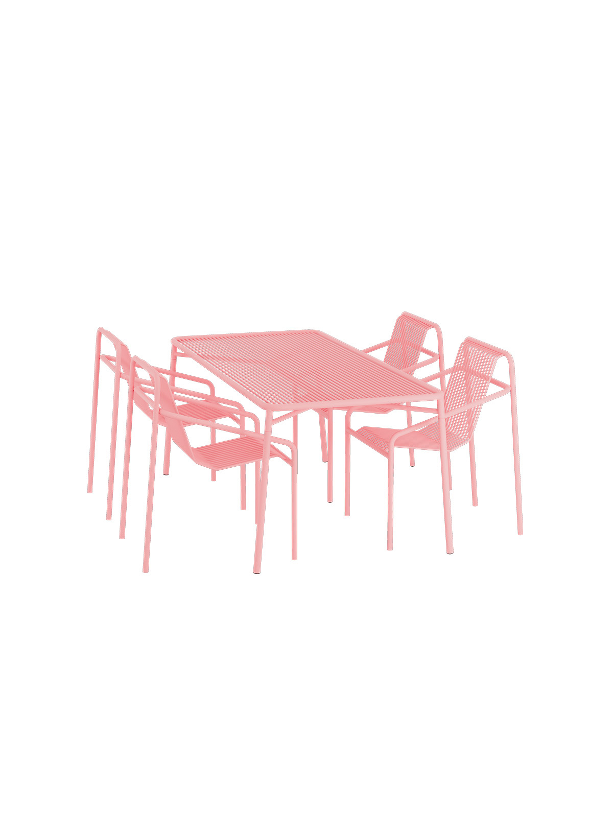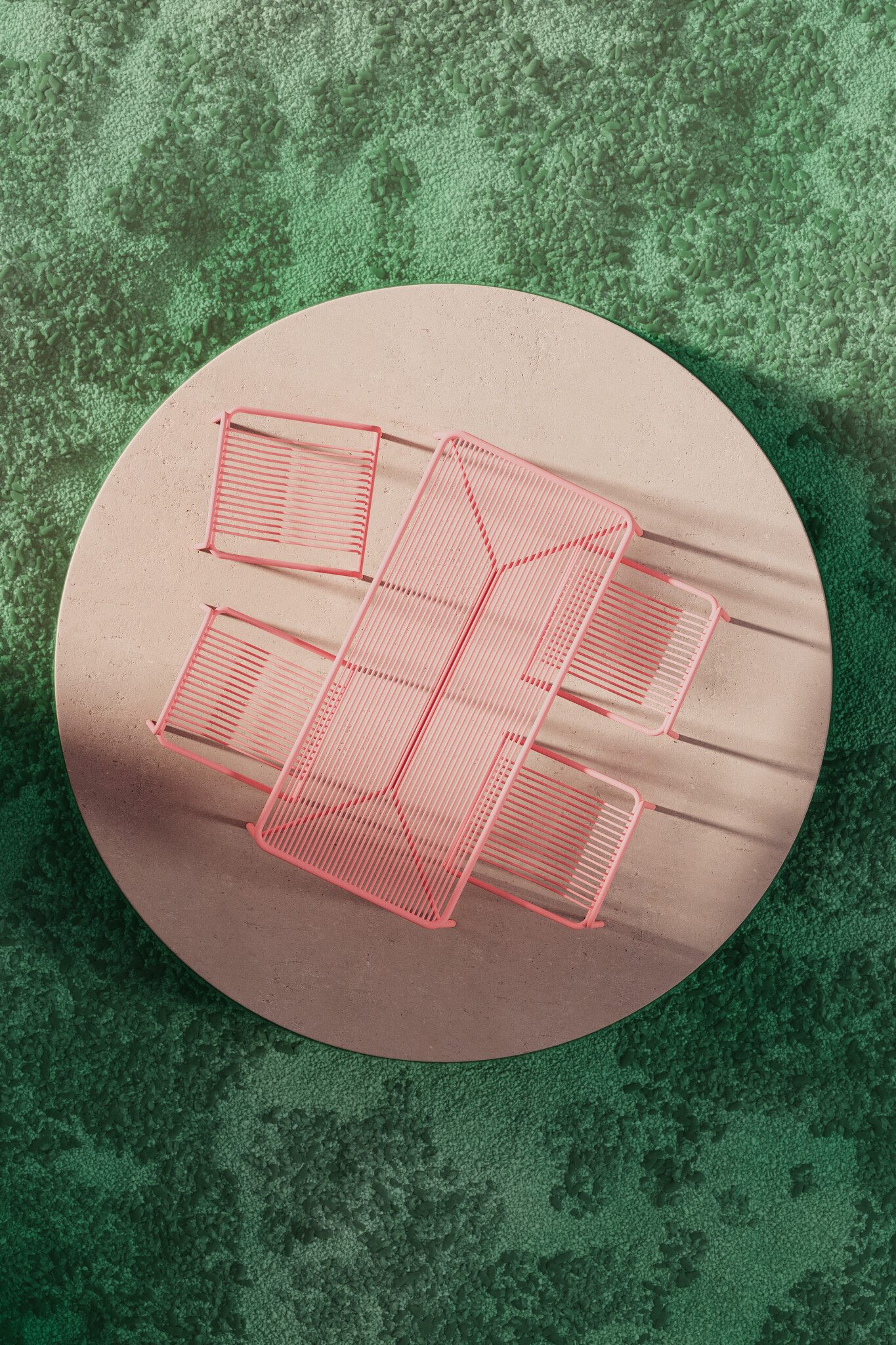 There it meets the colors of the collection: Sienna Red and Soft Pink. They develop a special aesthetic when they interact with the greenery of nature or urban architecture. They are a liberation from the constraints of the interior, where we always have to look for references to other colors. Outside you are free. Lean back into the imaginative world of IVY.