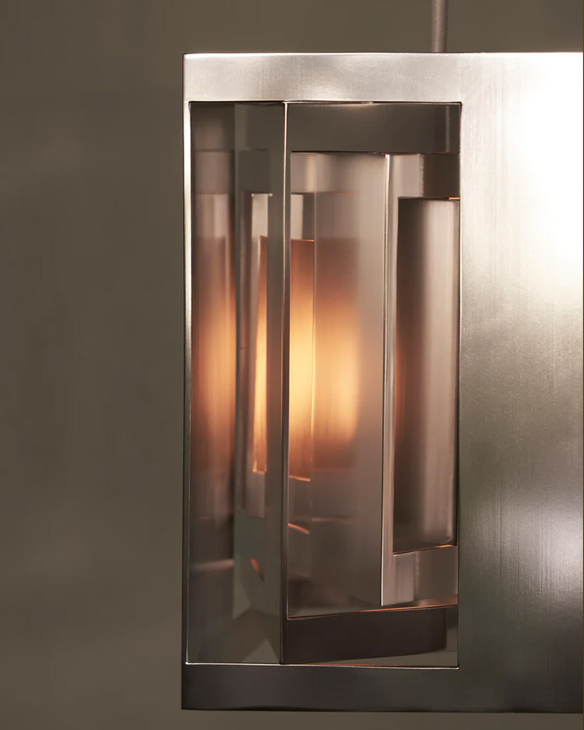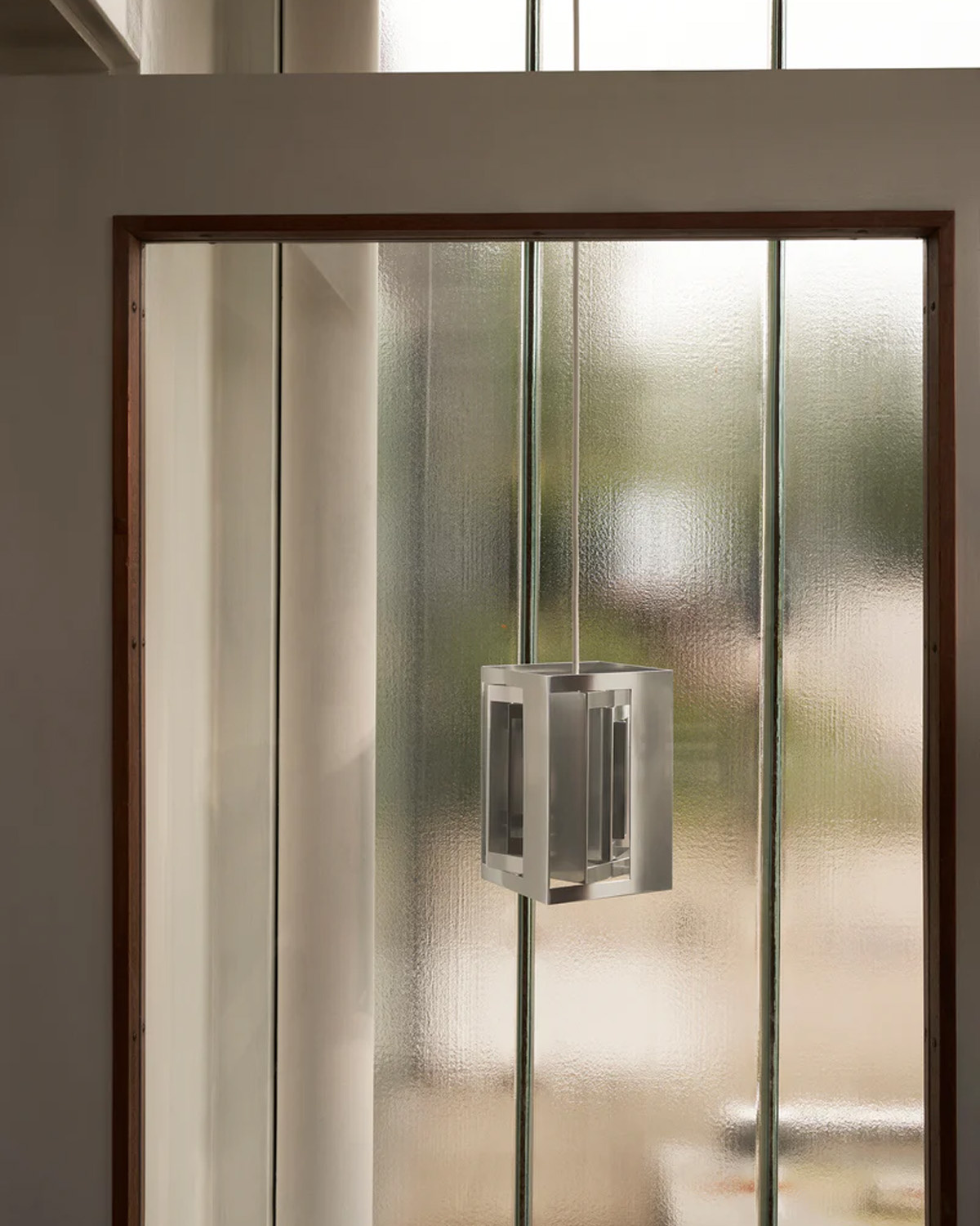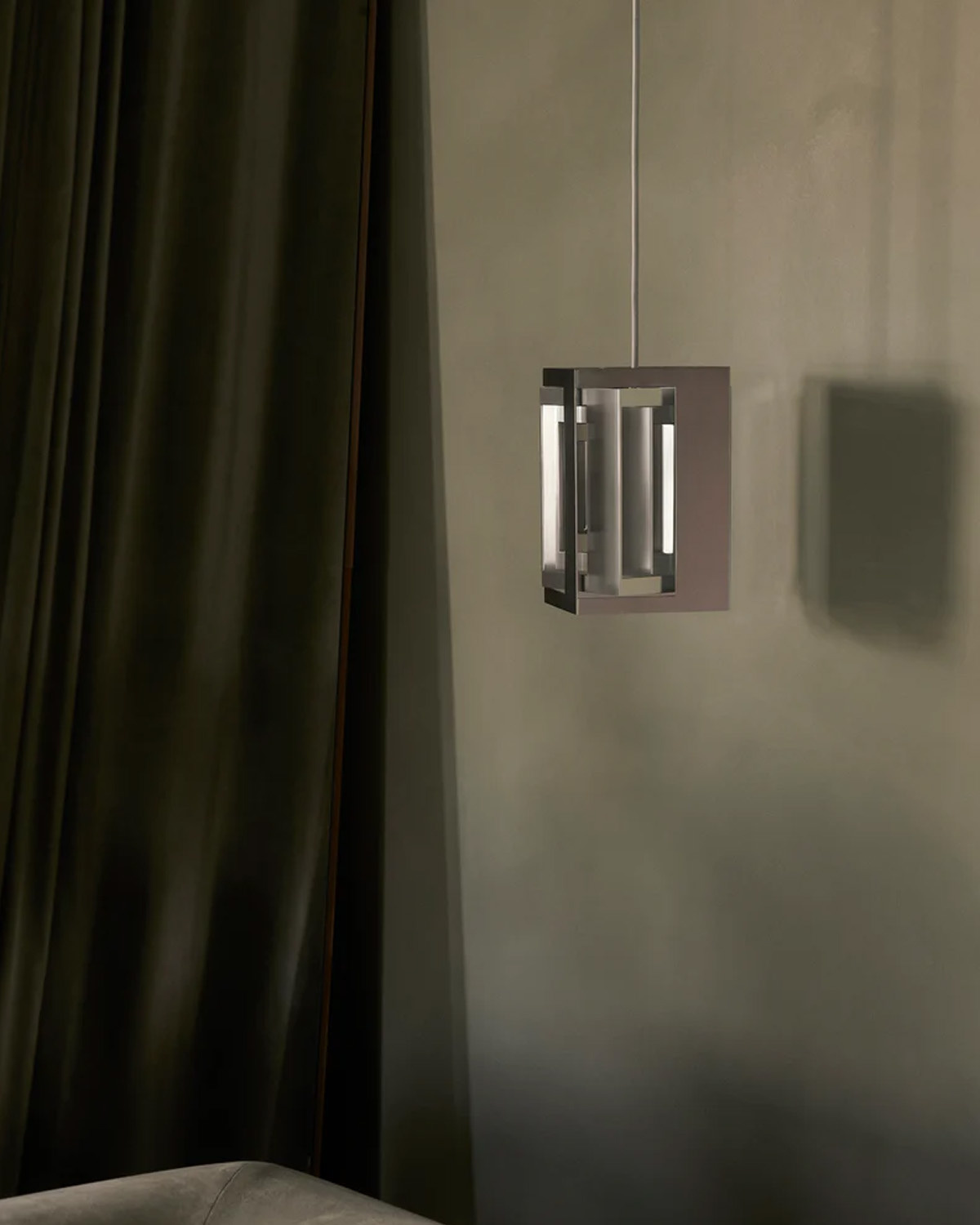 KASSABLANKA is a fascinating masterpiece of illumination designed by Simon P. Henningsen in 1964. Crafted from sleek aluminium, this iconic lamp features a captivating arrangement of four interlocking cubes, each adorned with precise rectangular cutouts.