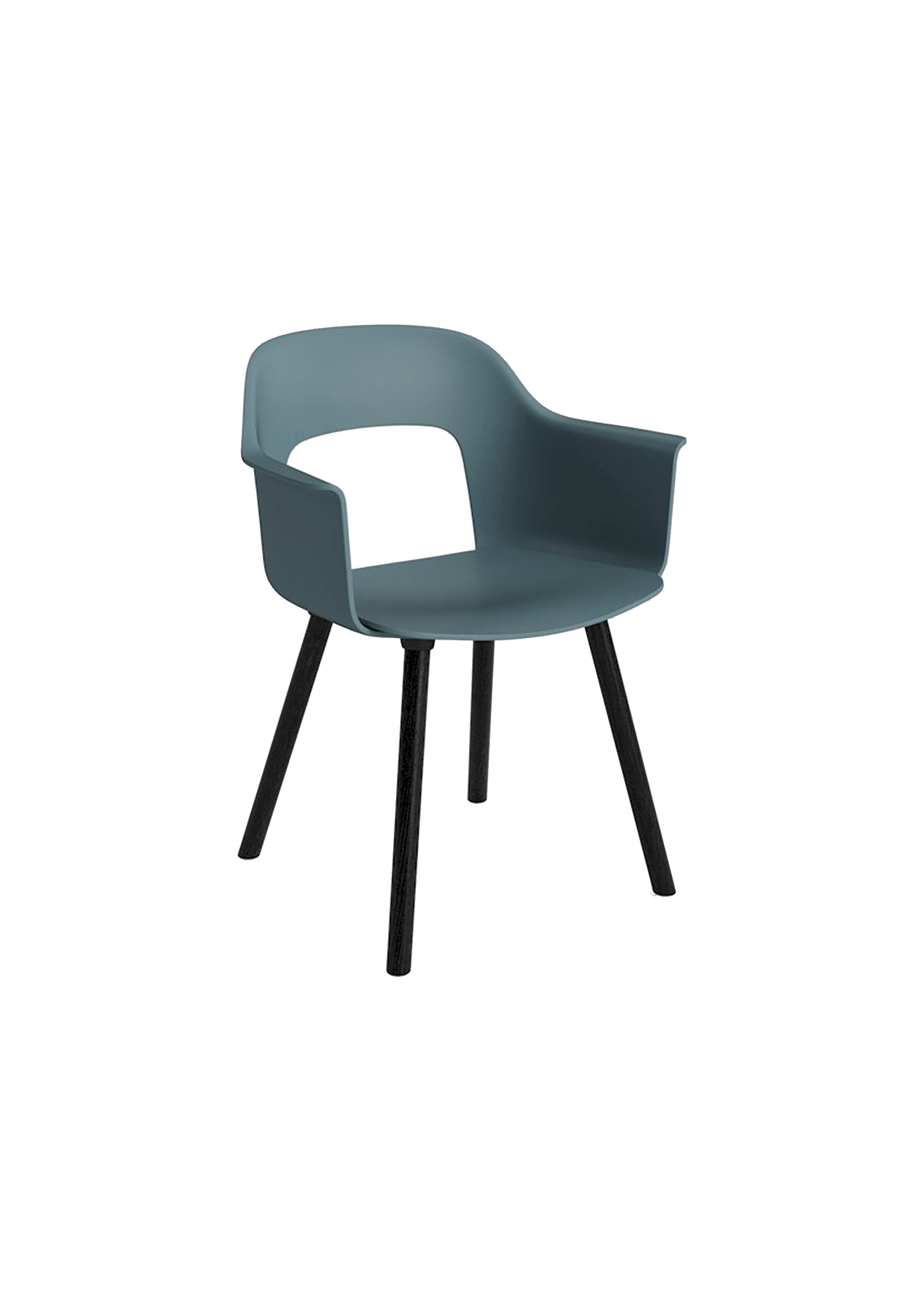 The shell is crafted from at least 96% post-consumer recycled plastic and is available in a range of colours. The base comes in different types of wood.