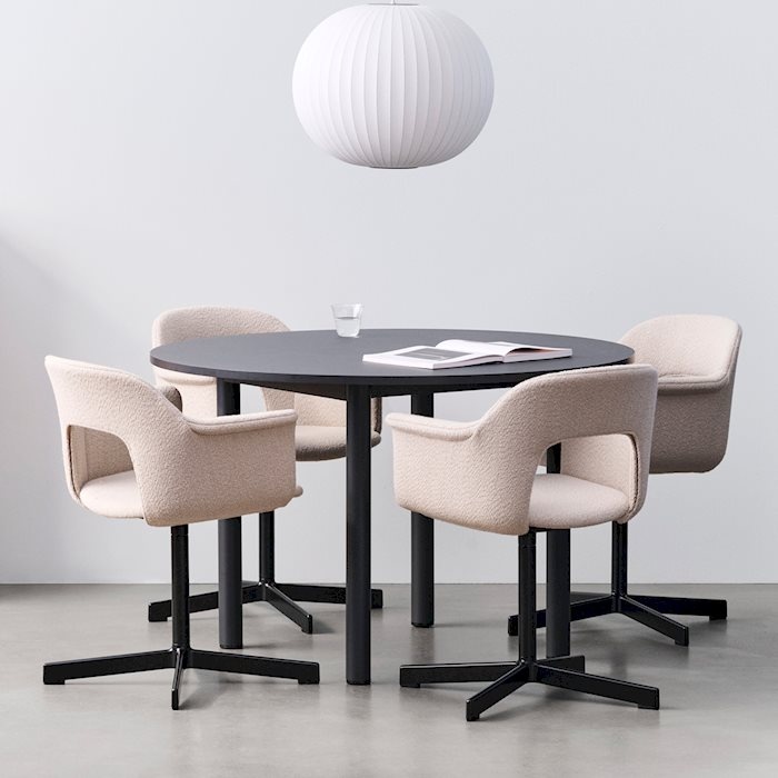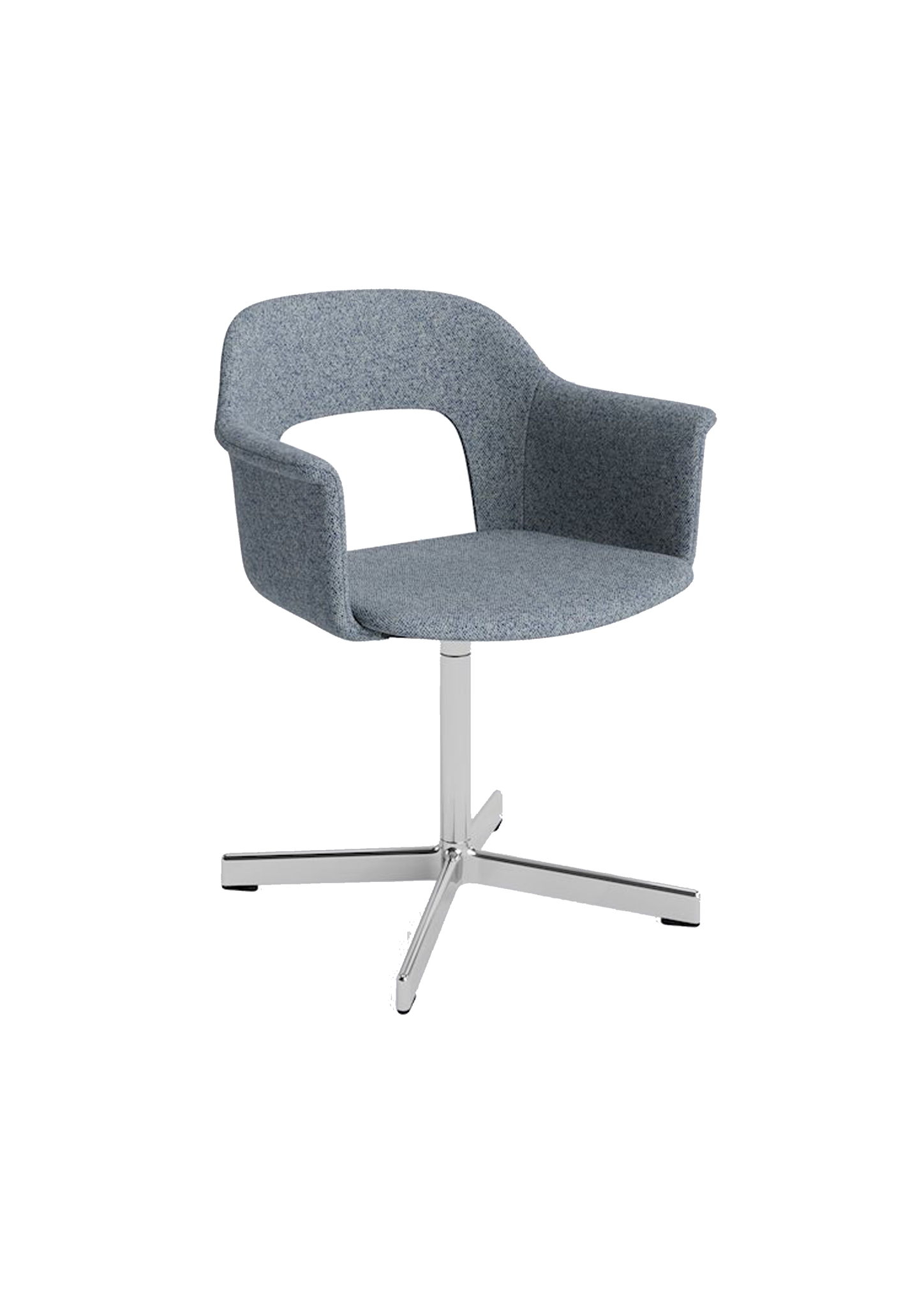 The upholstered seat and back add warmth and an inviting character, while the sleek swivel four-star aluminium base provides stability and ease of movement.