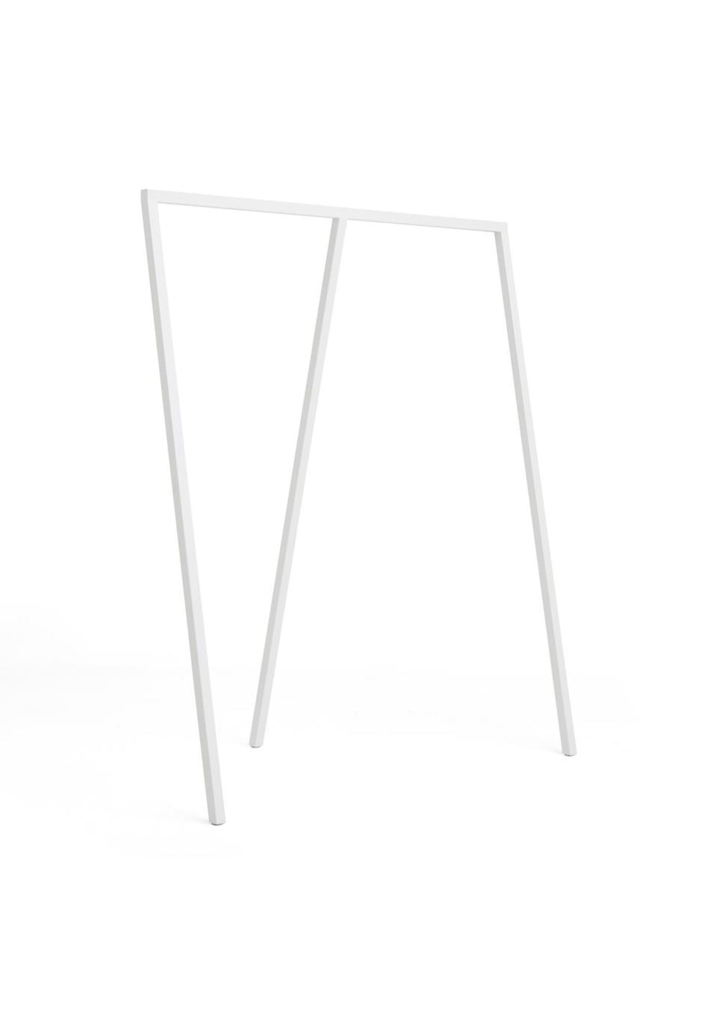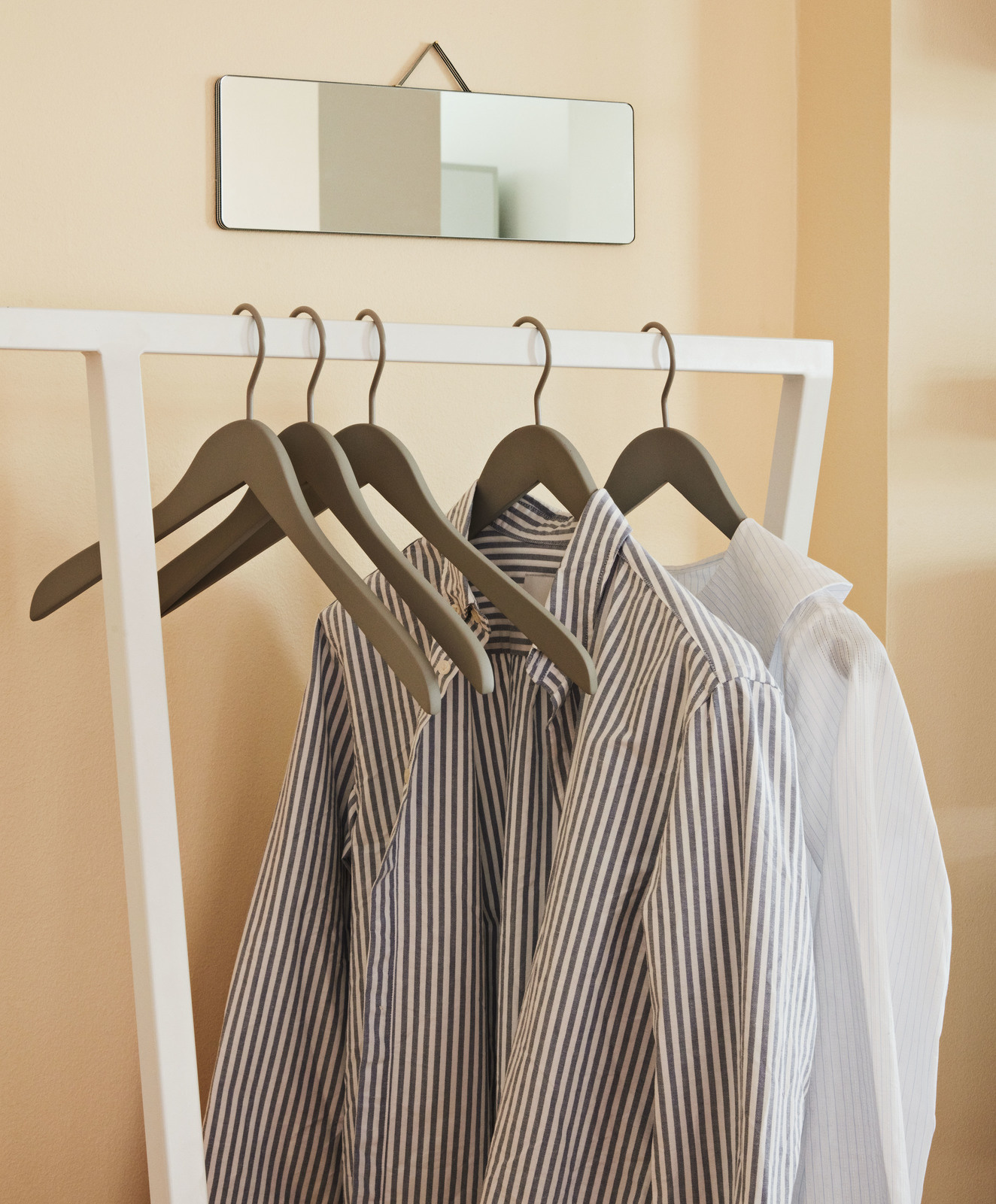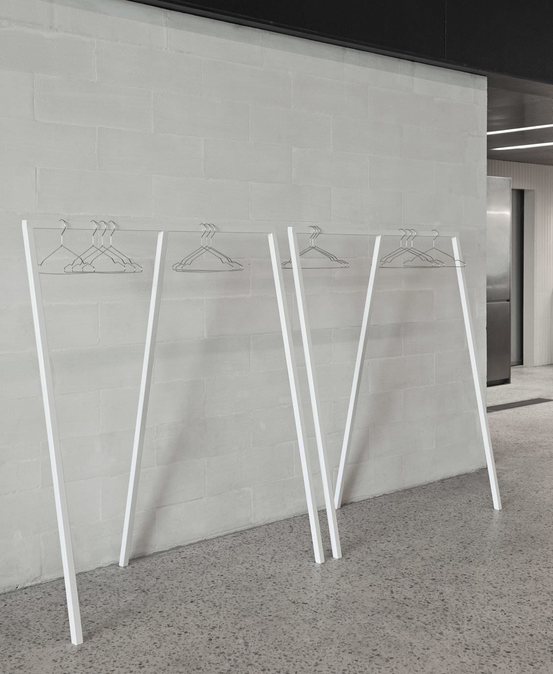 Loop Stand Wardrobe is a larger version of Loop Stand Hall. Based on the same elegant and graphic three-pillared design, it offers a simple and discreet wardrobe solution with increased capacity. Suitable for hanging clothes in a variety of private or public environments.