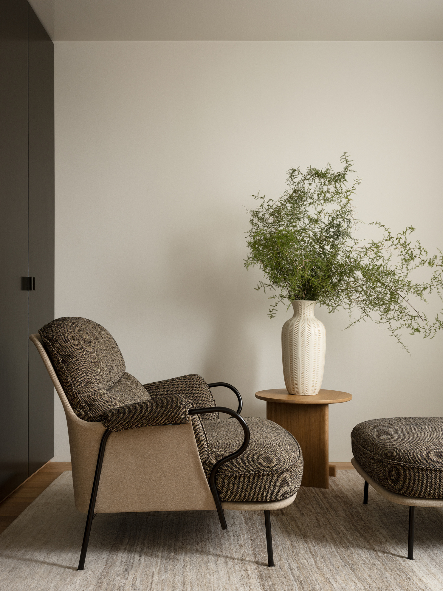 The Lyra Ottoman is designed as the ideal complement to the Lyra Armchair. This elegant footstool combines clean aesthetics with exceptional comfort. With its soft padding and optimal height, it offers the perfect place to rest your legs, enhancing the comfort of your lounging space.
