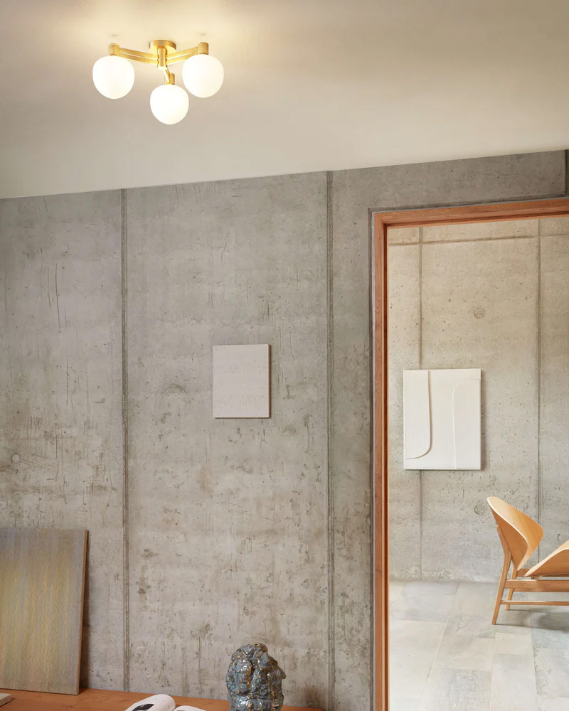 MEMOIR is a product family designed by GamFratesi based on a modern take and interpretation of the classic chandelier. At the heart of the design is the gently shaped opal glass shade that evokes a historical typology and romantic spirit. The linear metal structures compose a graphic outline that allows it to be connected in numerous compositions. The simplistic ingenuity of the MEMOIR lighting system bridges decorative details of the past and a sculptural silhouette intended for modern spaces.
