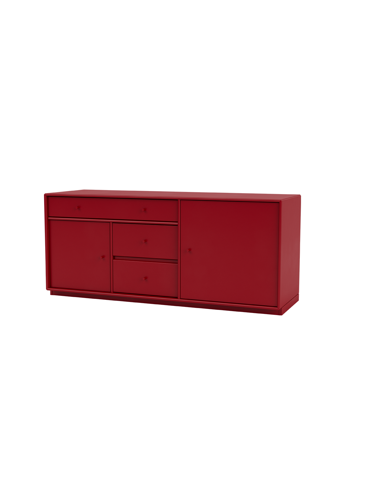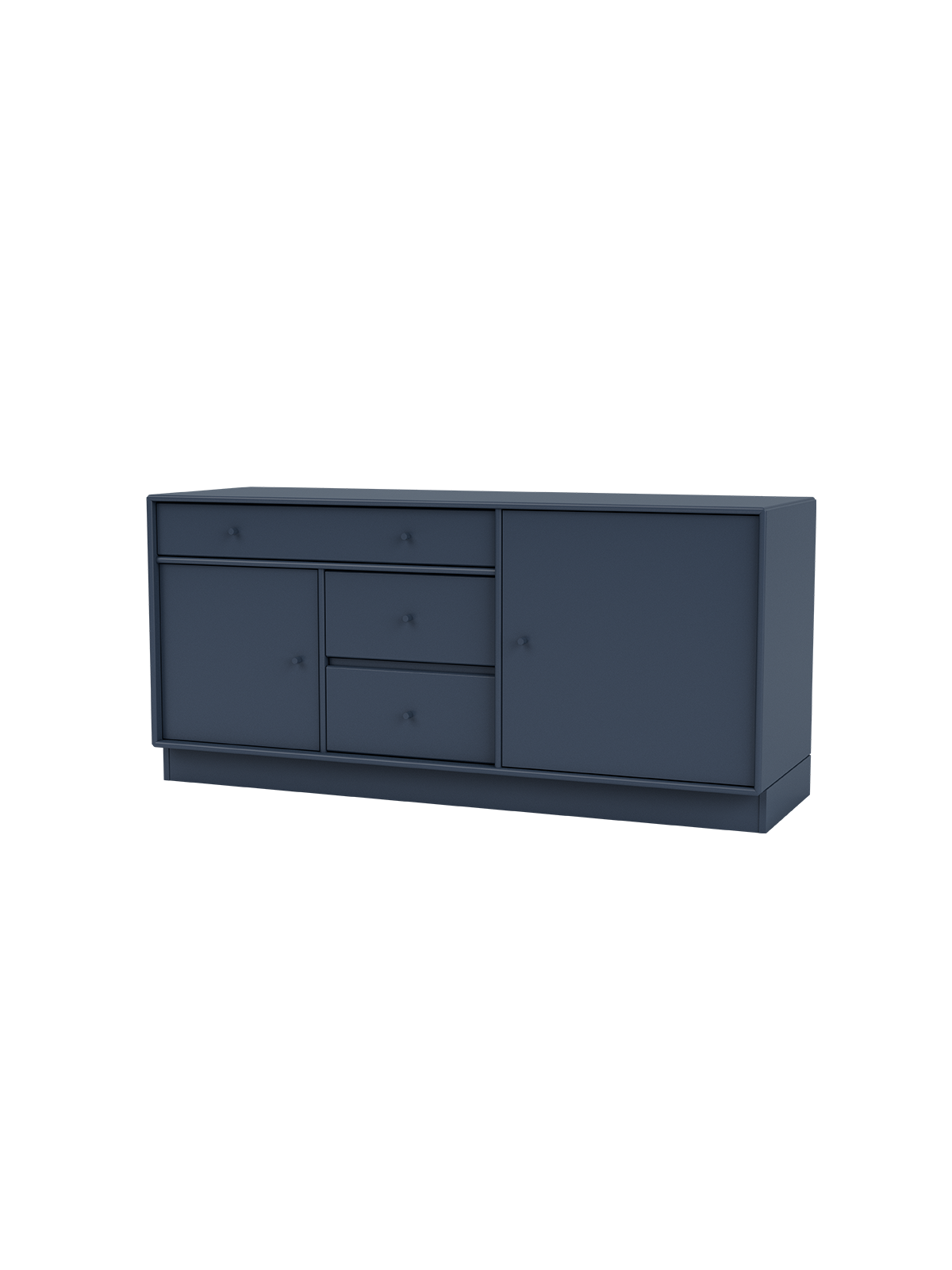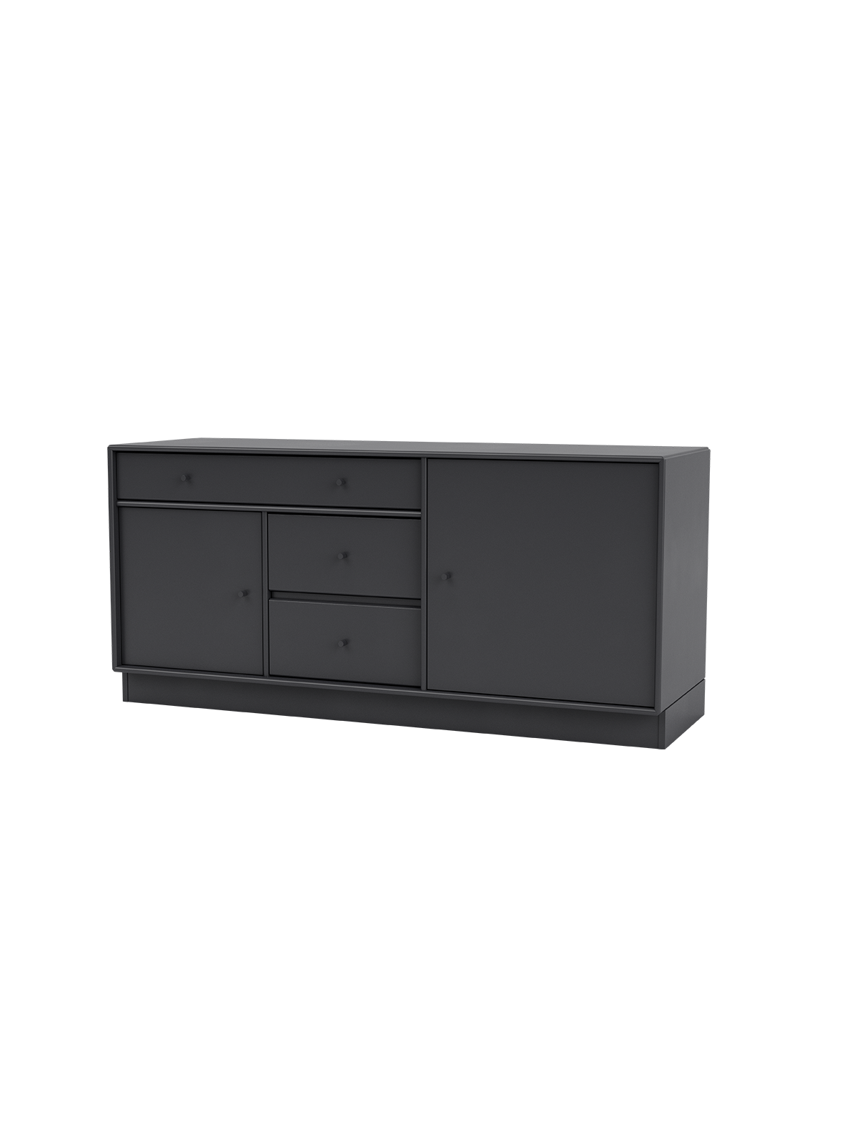 This lowboard from the Montana Mega series gives you three spacious drawers and two compartments with doors. The closed compartments along with the drawers make this piece of furniture perfect for keeping your space clutter-free. The asymmetric arrangement of the doors and drawers adds a charming playfulness. This storage solution works equally well in in the living room, the kitchen, or the entrance hall.