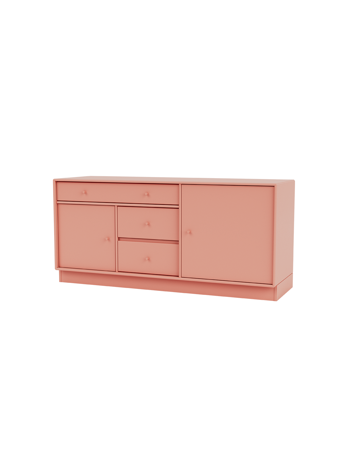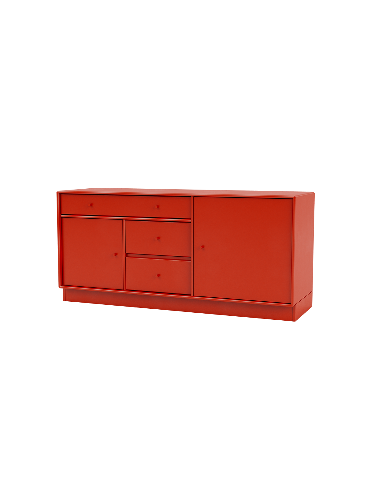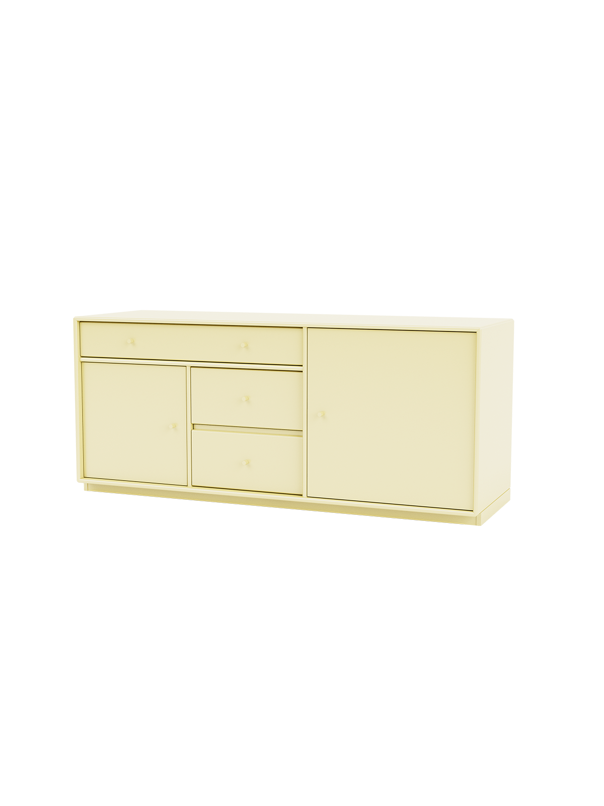 This lowboard from the Montana Mega series gives you three spacious drawers and two compartments with doors. The closed compartments along with the drawers make this piece of furniture perfect for keeping your space clutter-free. The asymmetric arrangement of the doors and drawers adds a charming playfulness. This storage solution works equally well in in the living room, the kitchen, or the entrance hall.