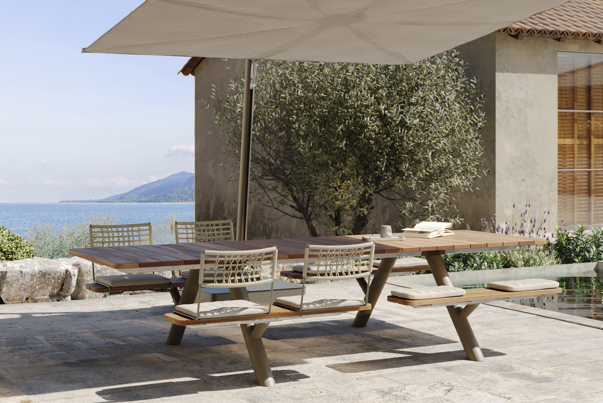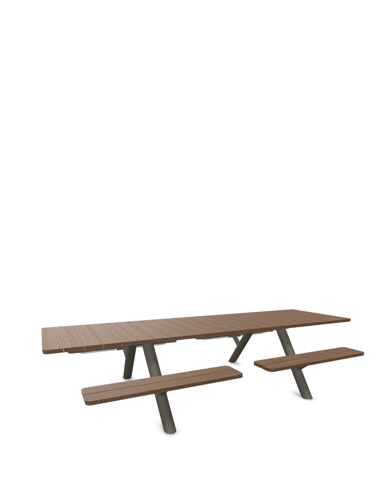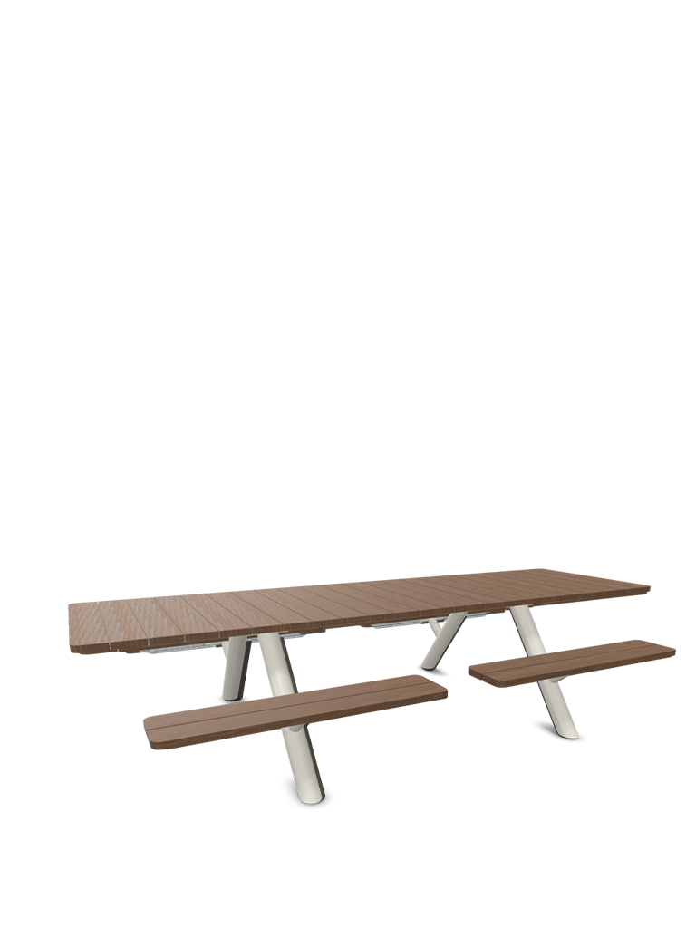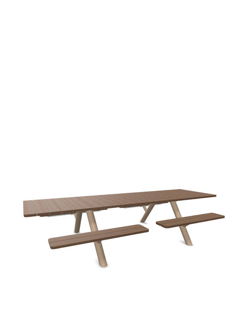 The Panigiri Picnic is the playful, informal version of the Panigiri table. Inspired by the warmth and hospitality of the Greek Panigiri festival, this picnic table invites everyone to gather and enjoy. Its smart modular design makes it endlessly extendable yet compact to transport and store. Perfect for picnics, parties, or large outdoor dinners.
