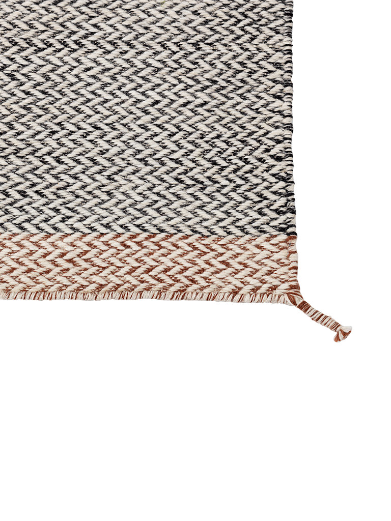 Create an accountWith its graphic expression and subtle details, the Ply Rug gently hints towards the weaving traditions of the past, communicated through its broken twill weave structure and tassel finishes. Made in 100% wool.