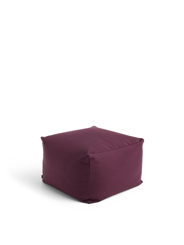 The Pouf is a multifunctional piece of furniture, serving as a footstool or extra seat. Its lightweight design makes it easy to move around, ideal for living rooms, children's rooms, or hallways. It can be paired with matching HAY furniture or used independently, and is available in various upholstery and color options.