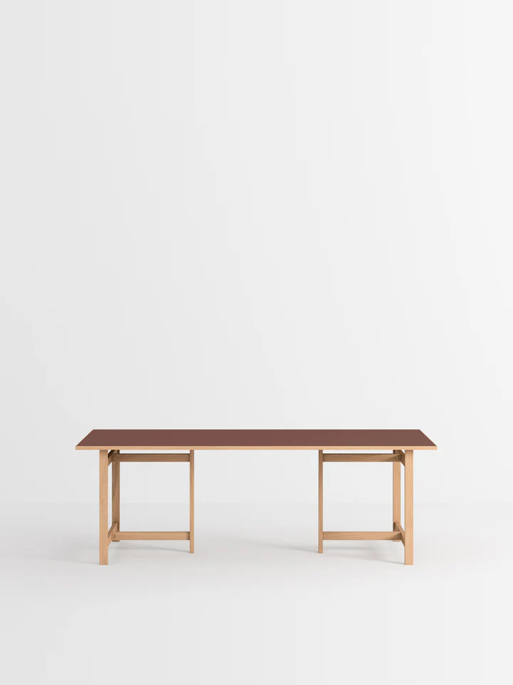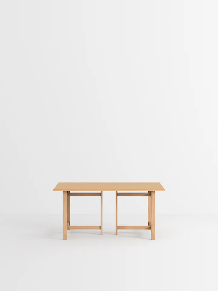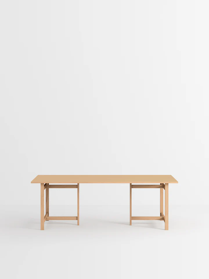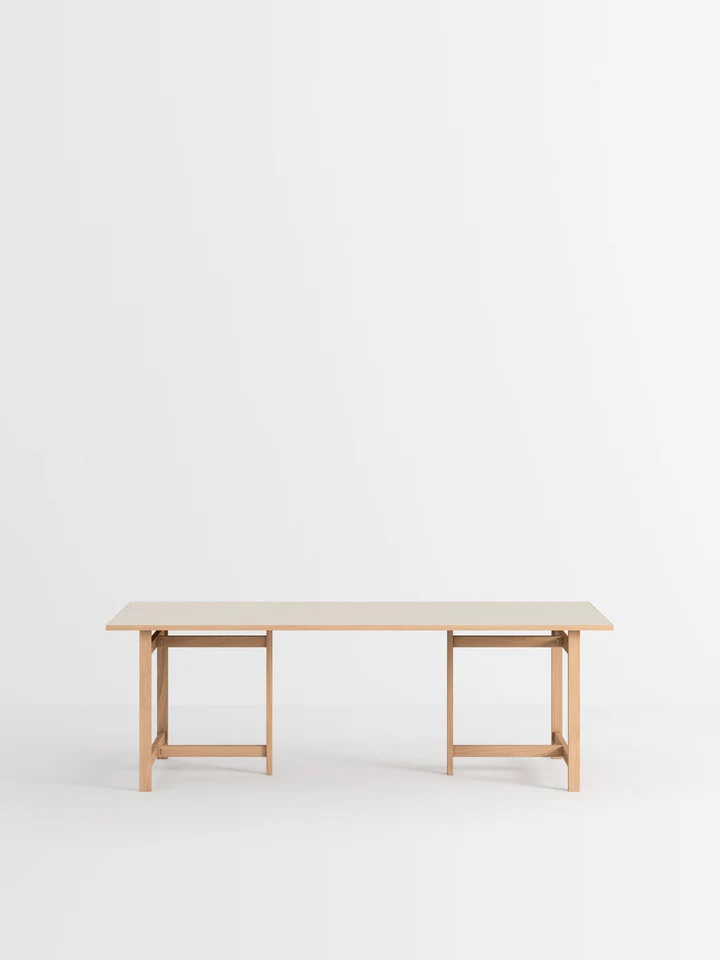 The MOEBE Rectangular Dining Table is simple in both form and construction. It arrives flat-packed and assembles into two T-frames, with the tabletop secured on top.