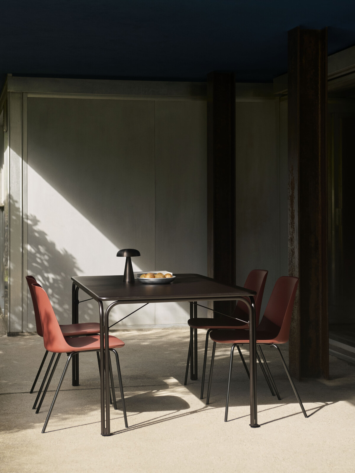 | Material | Recycled PP shell with UV protection and fibreglass. Steel leg base finished with outdoor powder-coating. |