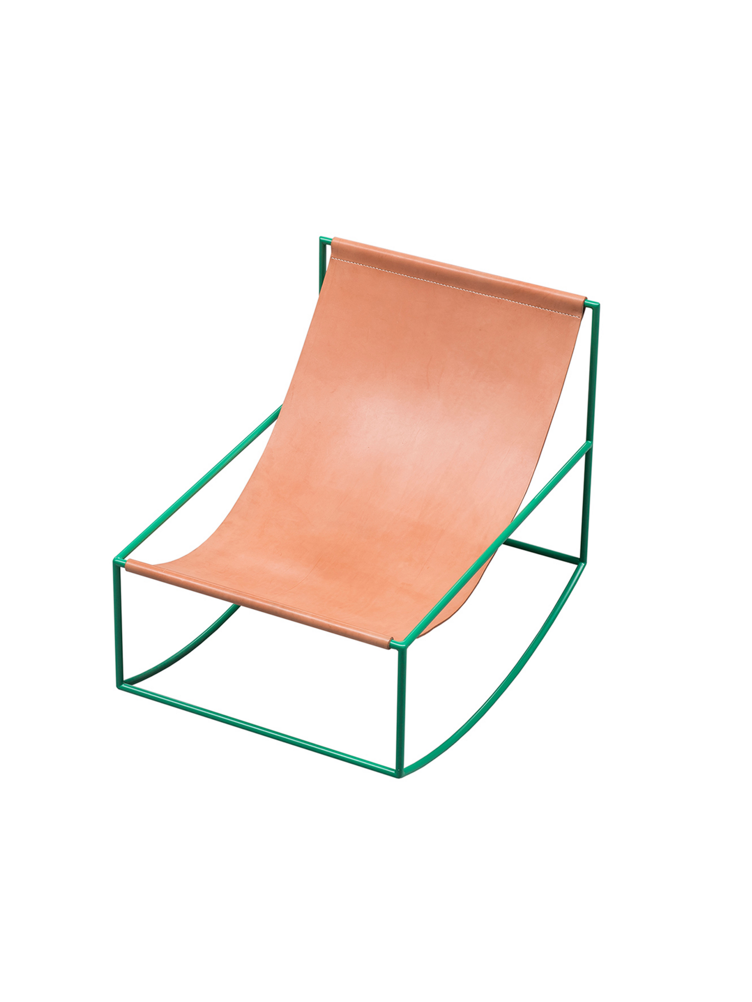 From now on, garden lounging can be done in true aesthetic style. valerie_objects introduces an outdoor version of Muller Van Severen’s rocking chair – perhaps one of the purest rocking chair designs ever created. The frame, made of electrolytically polished stainless steel, and the fabric seat are both crafted from premium, weather-resistant materials. This makes the chair perfectly suited for indoor as well as outdoor use. The vibrant color palette, unmistakably Muller Van Severen, brings character and life to any outdoor setting while preserving the brand’s signature sense of minimalism and playfulness.