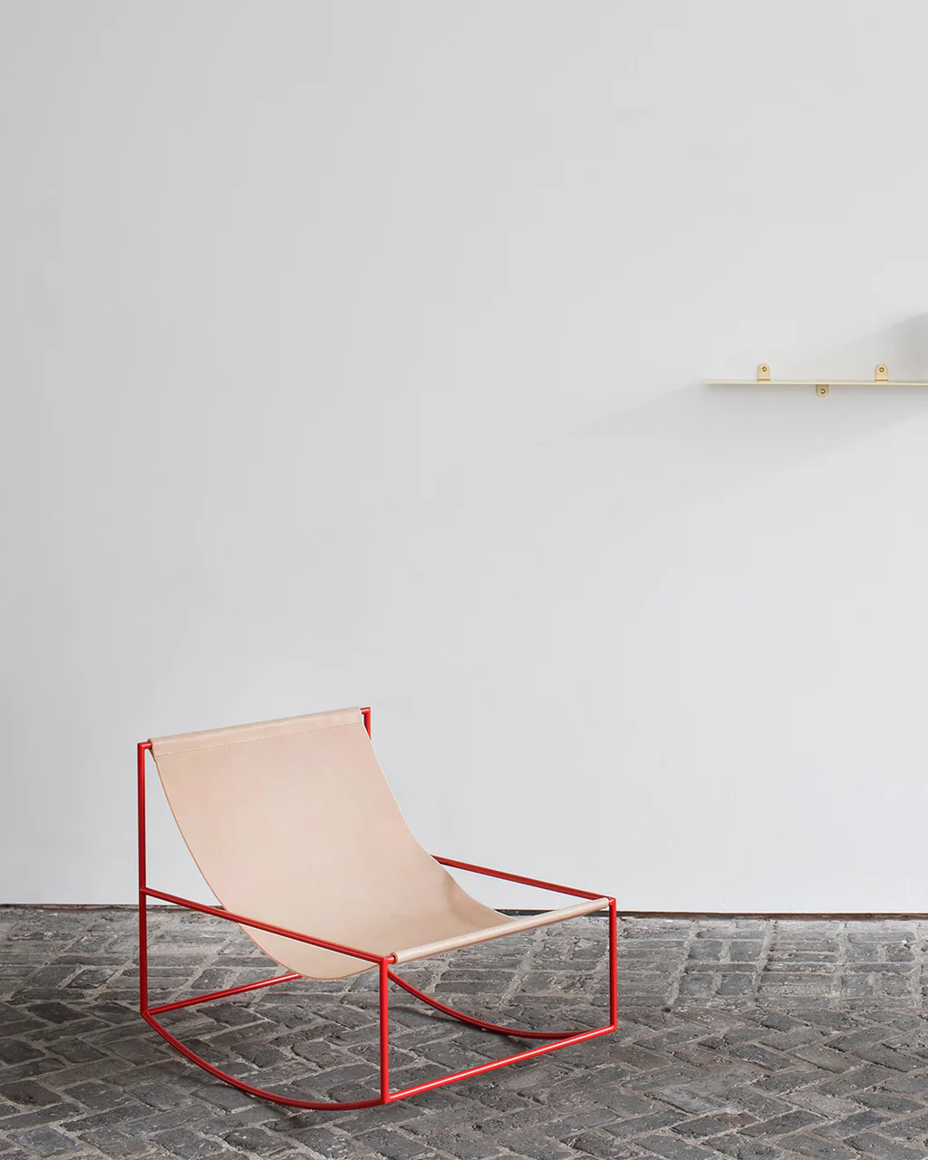 From now on, garden lounging can be done in true aesthetic style. valerie_objects introduces an outdoor version of Muller Van Severen’s rocking chair – perhaps one of the purest rocking chair designs ever created. The frame, made of electrolytically polished stainless steel, and the fabric seat are both crafted from premium, weather-resistant materials. This makes the chair perfectly suited for indoor as well as outdoor use. The vibrant color palette, unmistakably Muller Van Severen, brings character and life to any outdoor setting while preserving the brand’s signature sense of minimalism and playfulness.