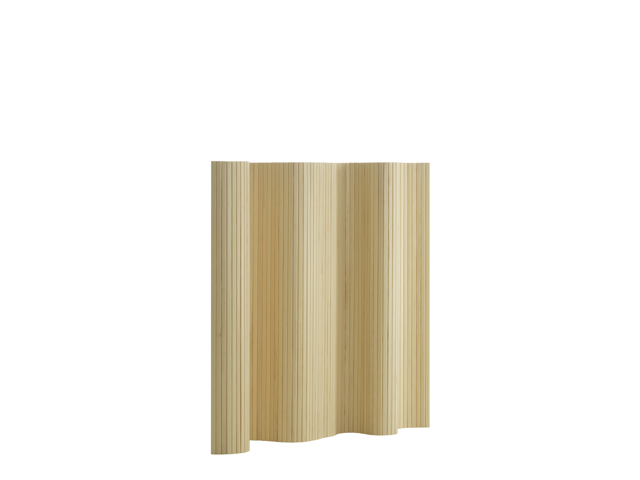 Screen 100 brings Alvar Aalto’s signature free-flowing, organic form into the living environment, translating one of his key architectural principles into everyday interiors. Crafted from vertically aligned pinewood strips, it balances structure with warmth, adding a natural and sculptural character to any room.