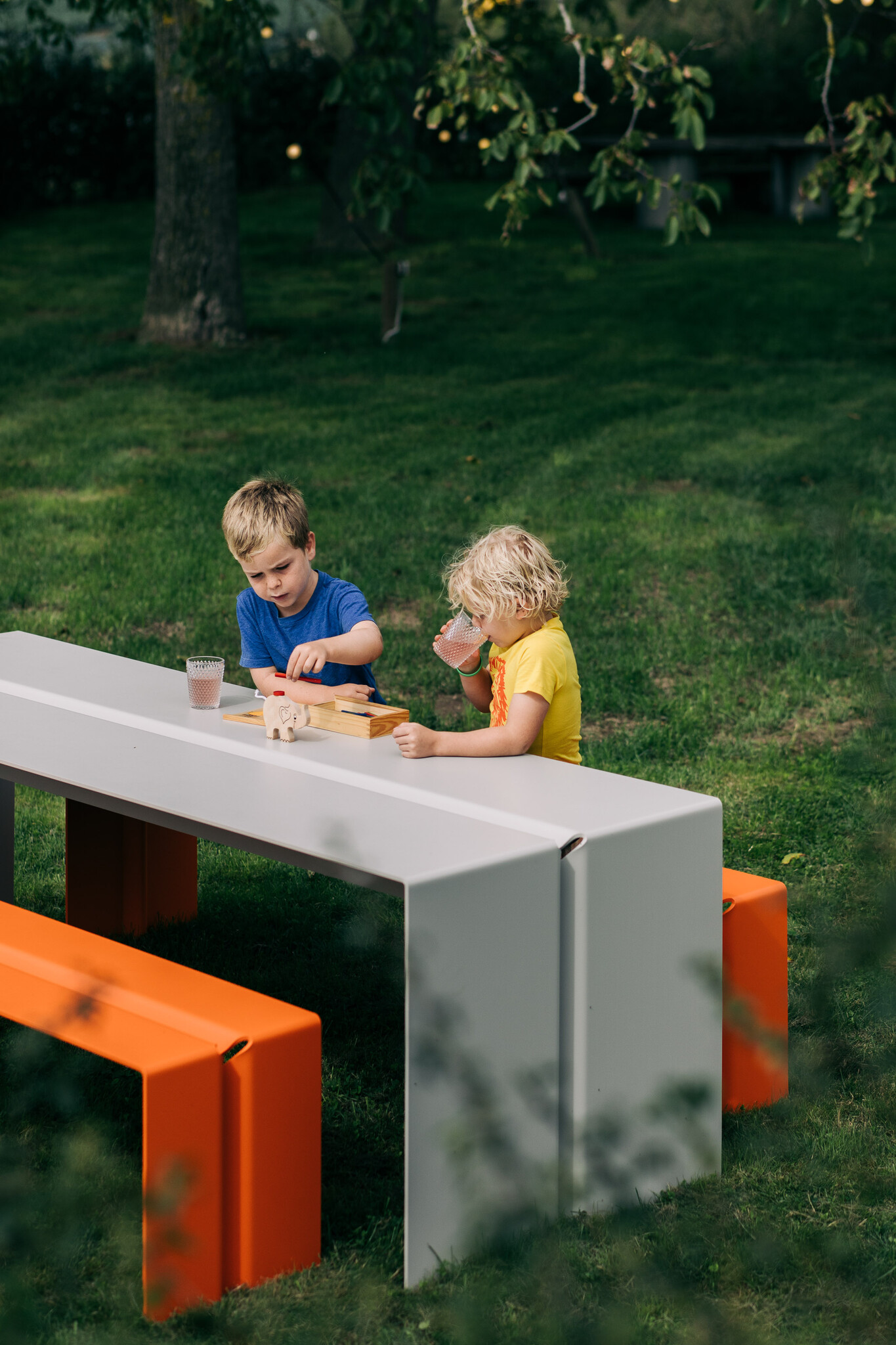 Made from 8 mm thick powder-coated aluminium, the table is crafted with great attention to detail and finishing. The durable construction ensures long-lasting performance, while the option for ground fixation on both sides makes The Bended suitable for public spaces as well as private environments.