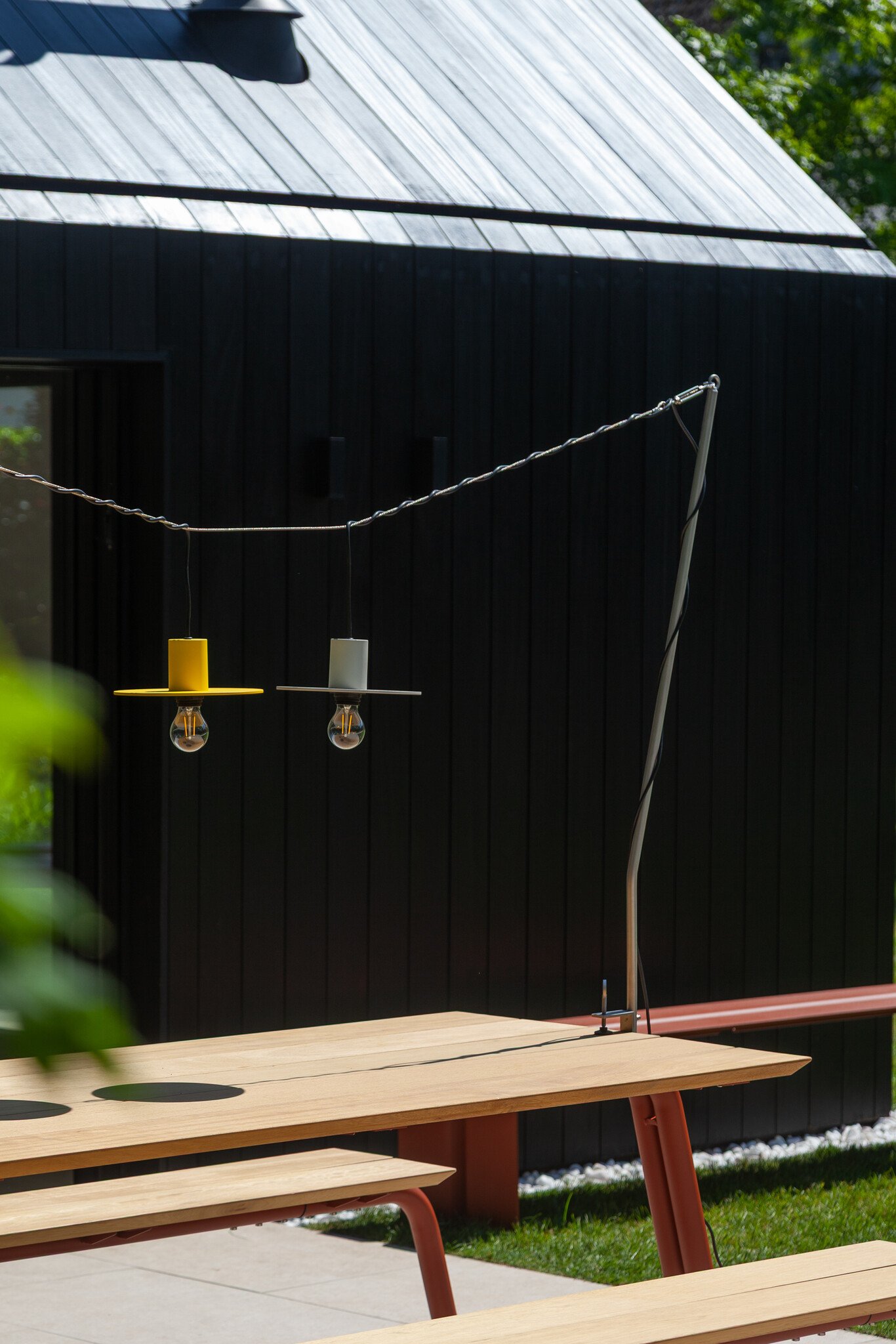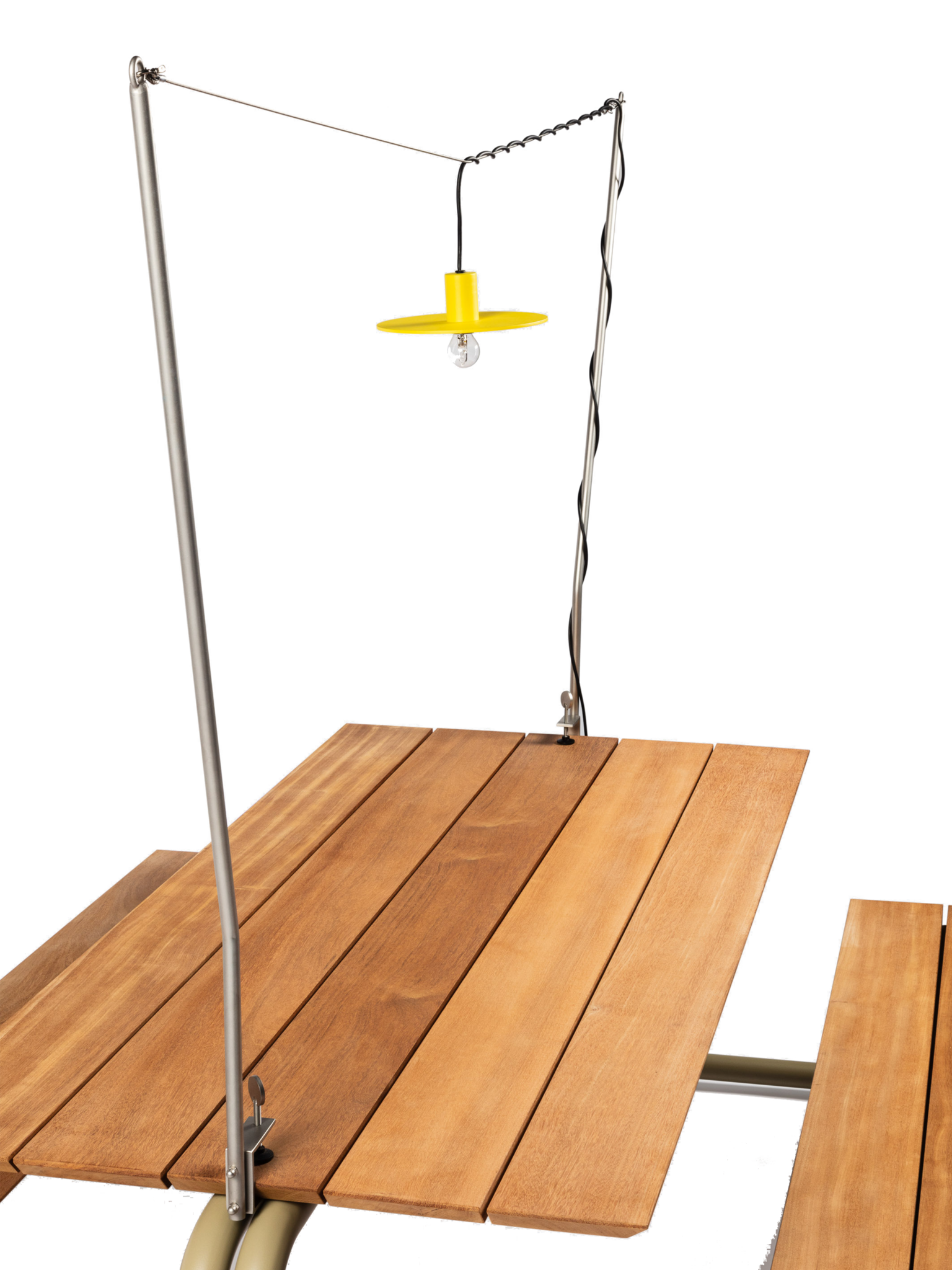 Available in yellow or grey, the lamp combines visual appeal with durability. Both arms are made from stainless steel, and the waterproof fixture ensures protection against rain and outdoor conditions. The Disc is suitable for both indoor and outdoor use, offering a reliable and stylish lighting solution.