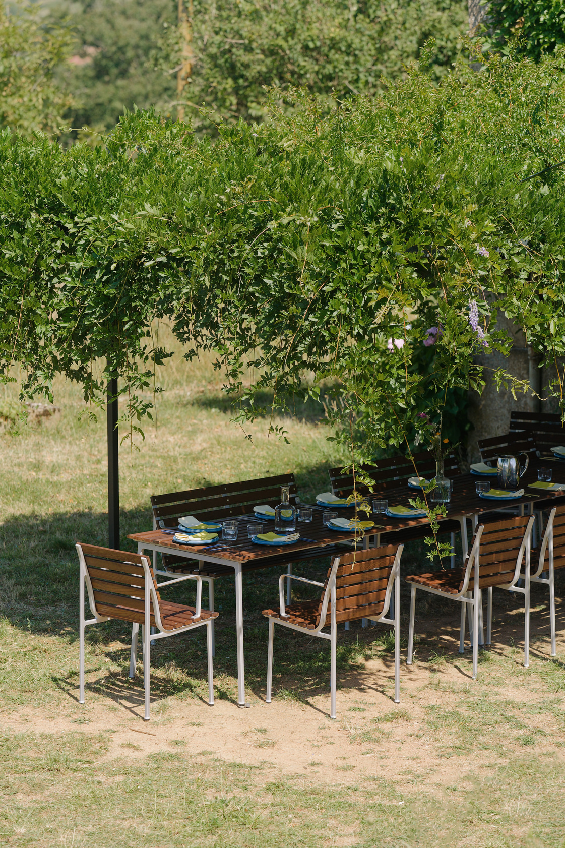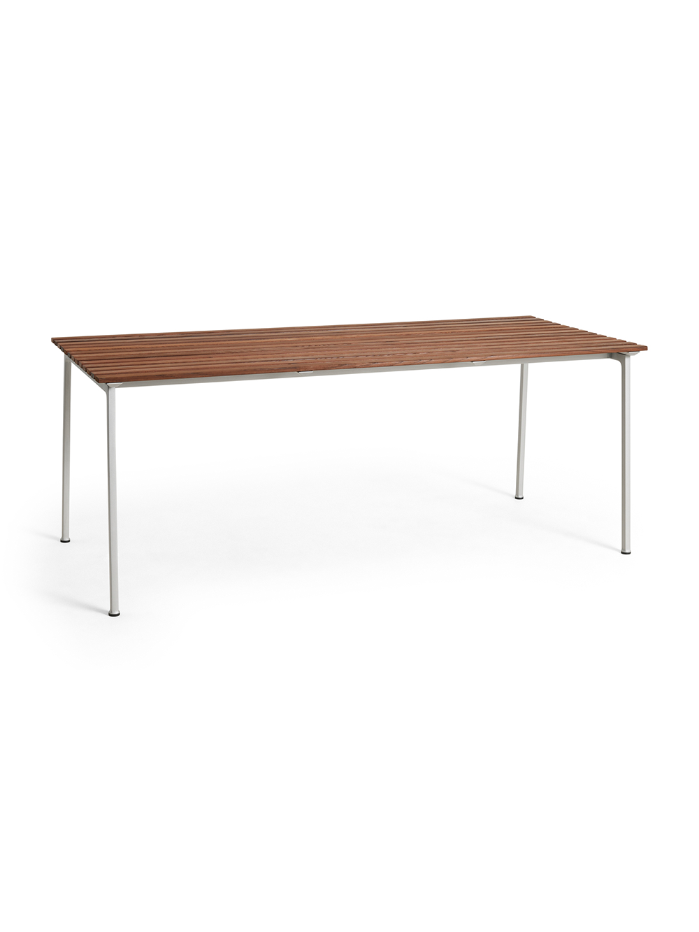 Designed for HAY by Erwan Bouroullec, the Traverse Table is part of an outdoor furniture collection designed to naturally blend in wherever it is placed. Comprising a die-cast aluminium frame with slatted tabletop in heat-treated ash, the table combines a robust construction with an inviting expression that naturally patinates to make it more beautiful over time. With its well-balanced aesthetics and different size options, the Traverse Table can be used with other Traverse furniture for eating and socialising in a wide range of private and public spaces.