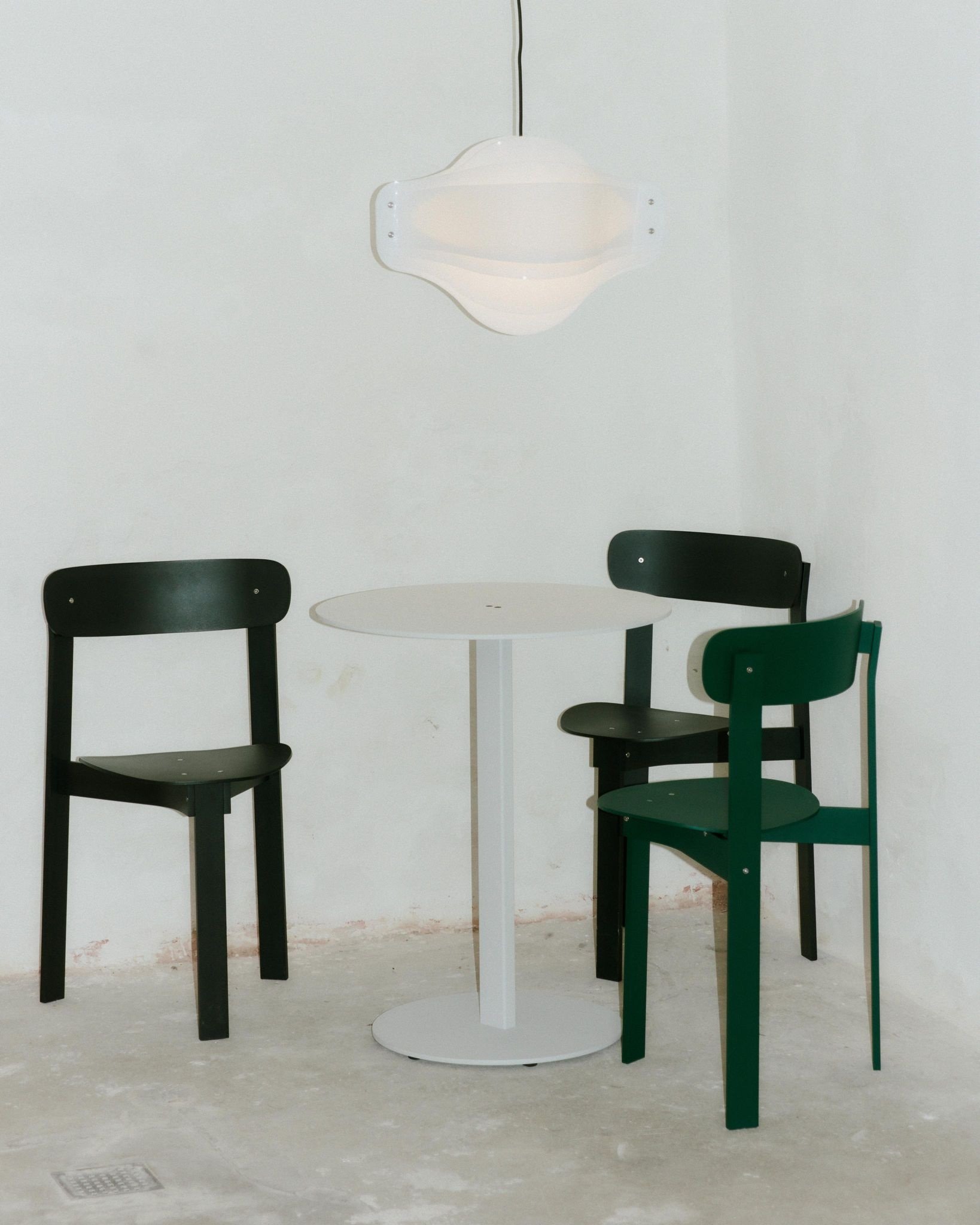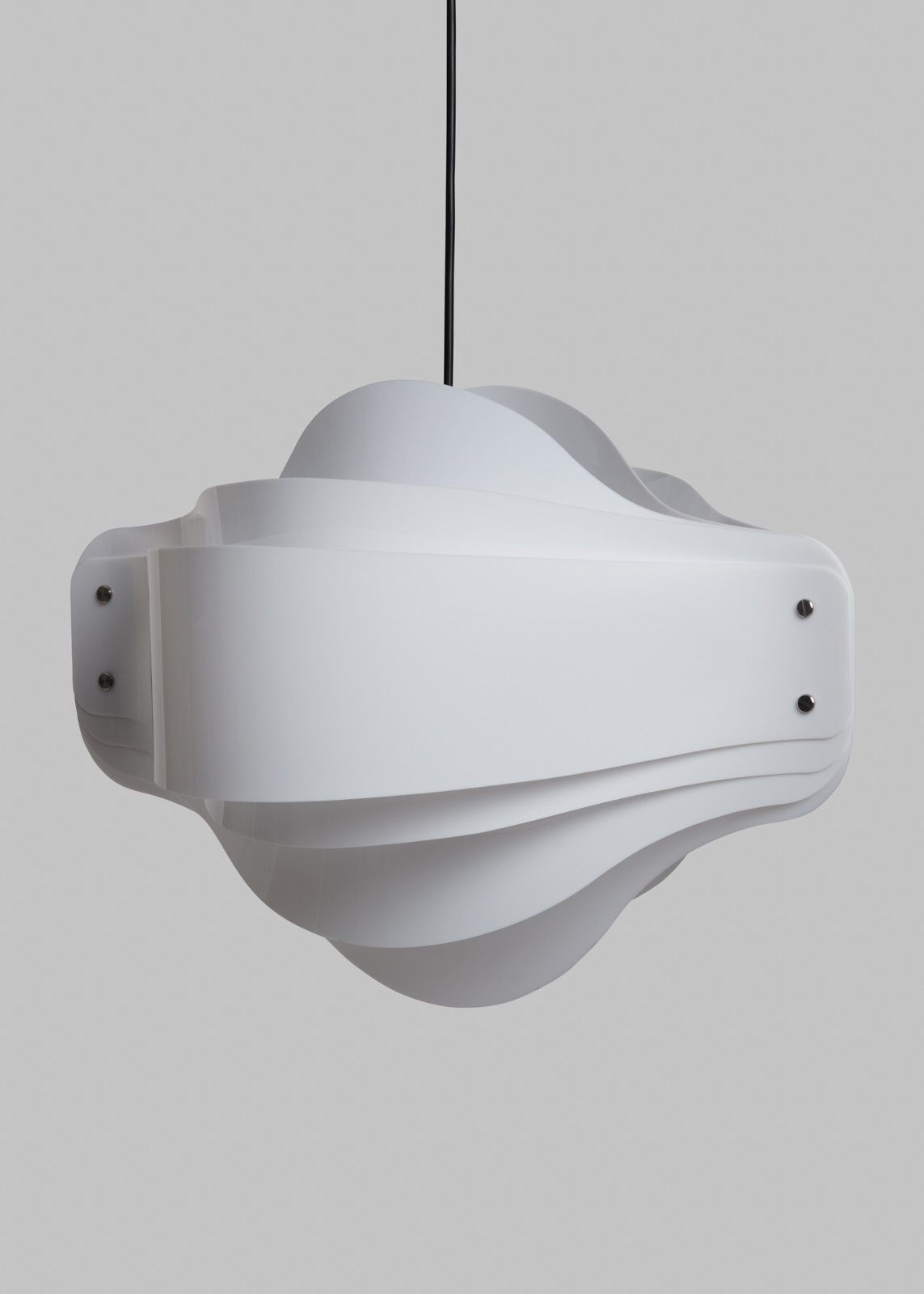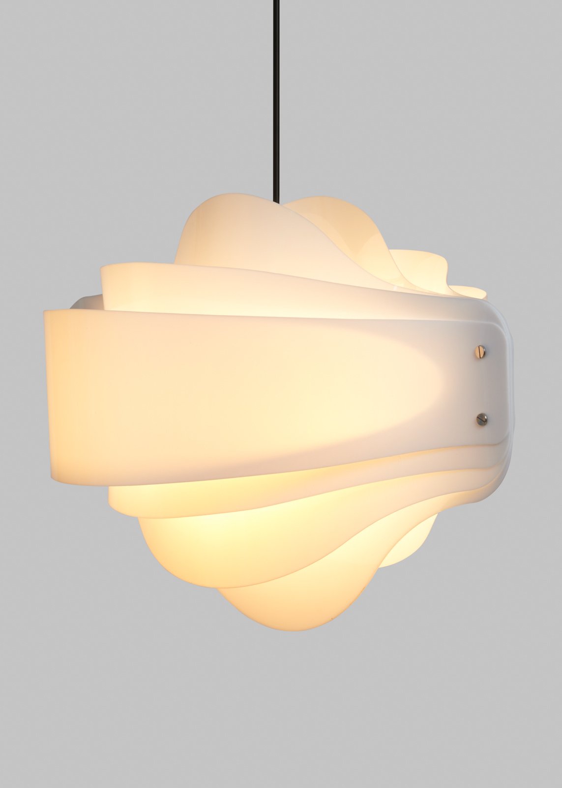 The opal acrylic version allows the light source to shine through with strength and softness, making it suitable as a primary light source in any room. Its shiny, elegant surface adds refinement and visual appeal.