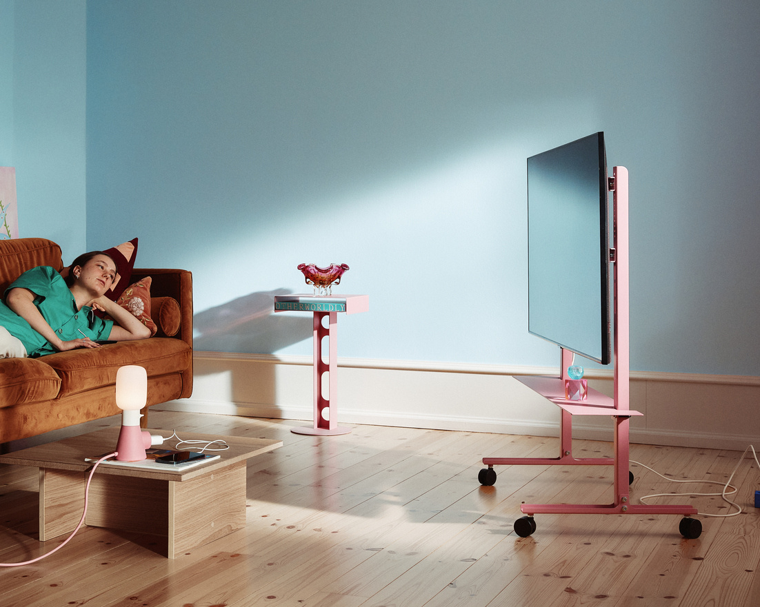 With its simple silhouette and functional features, Straight Rollin’ is a contemporary design blending effortlessly into any modern home interior. Straight Rollin’ has straight legs and wheels allowing it to easily be moved from one room to another. Made of powder coated steel, Straight Rollin’ is functional, durable and steady.